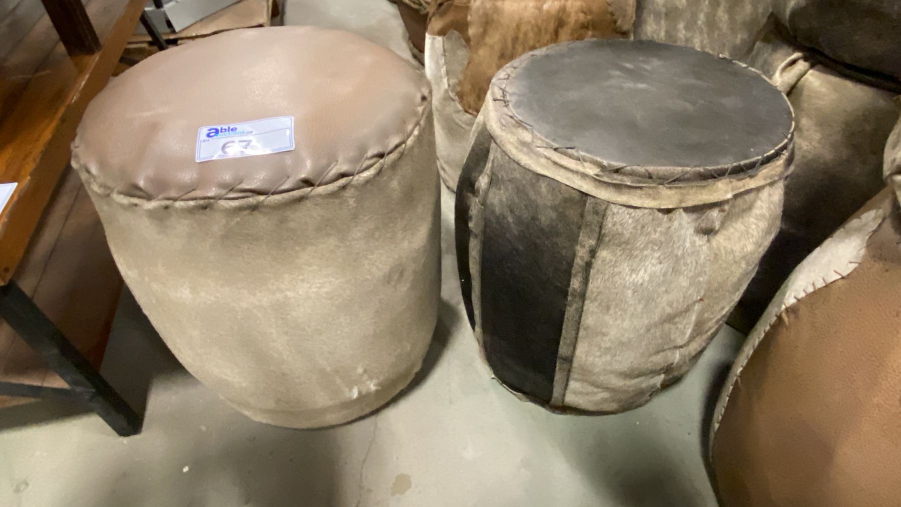 PAIR OF ANIMAL HIDE/LEATHER STOOLS