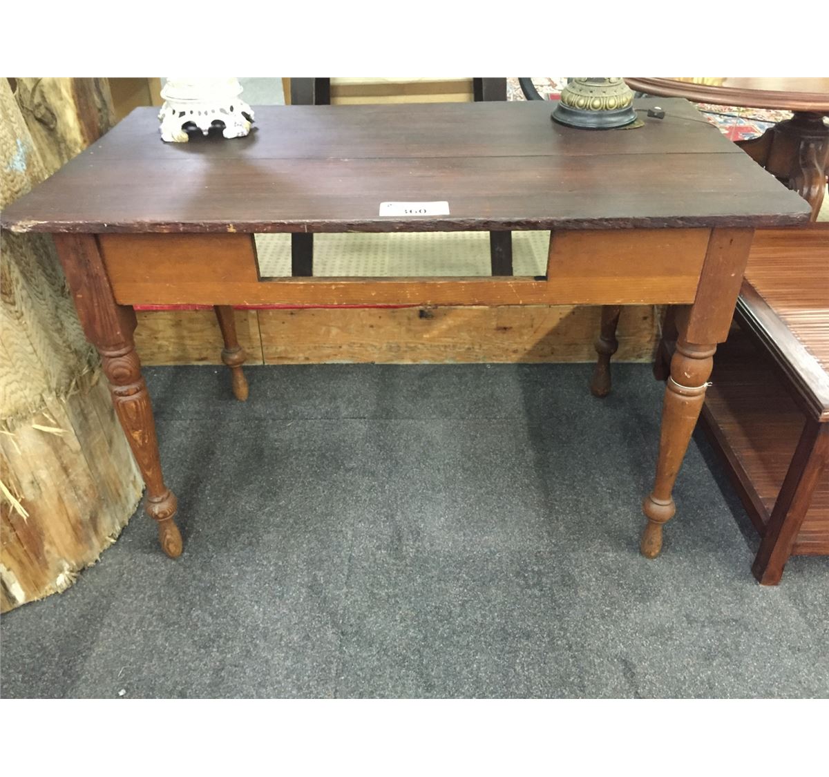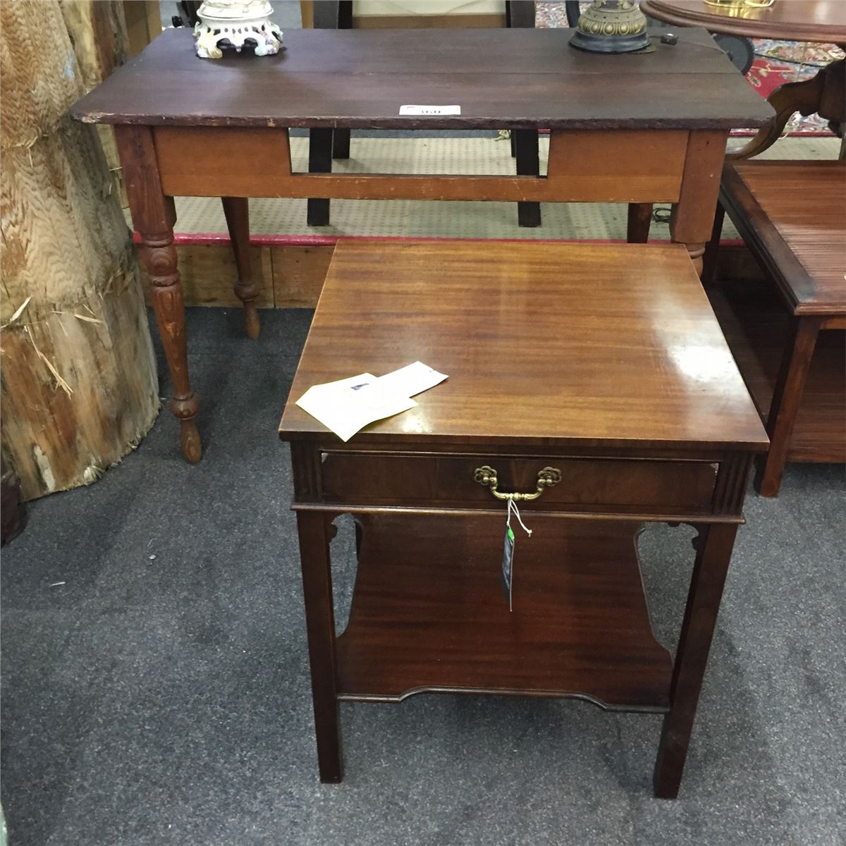 PAIR OF ANTIQUE TABLES A COUNTRY KITCHEN TABLE AND VINTAGE MAHOGANY SIDE TABLE