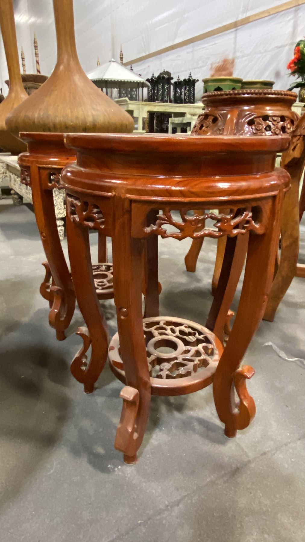 PAIR OF APPROX. 19" TALL CARVED MAHOGANY PLANT STANDS