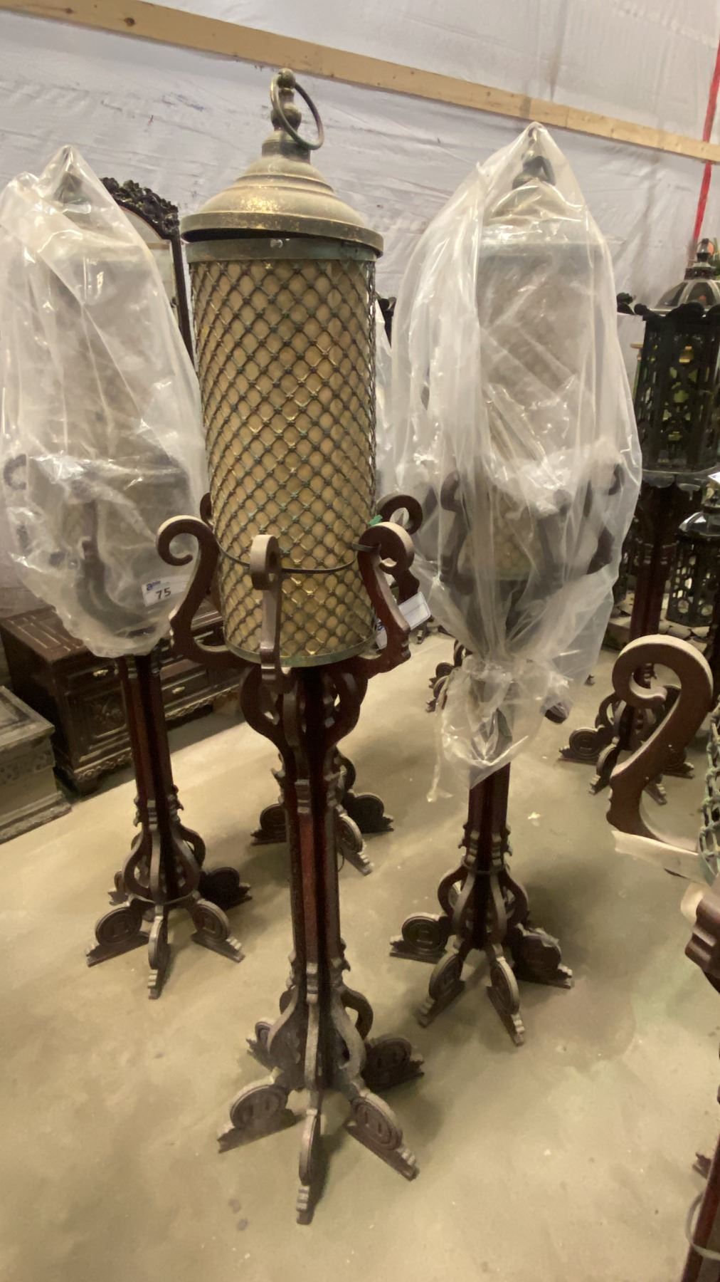 PAIR OF ASIAN STYLE WOODEN FLOOR LAMPS