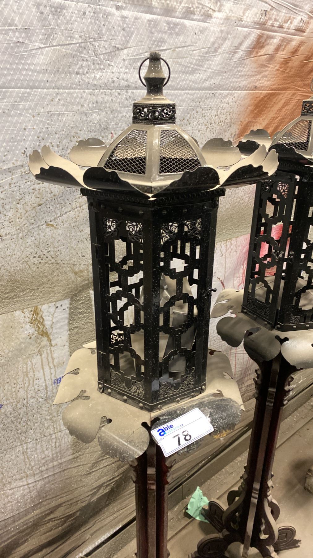 PAIR OF ASIAN WOOD/METAL LANTERN STANDS
