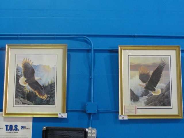 PAIR OF BALD EAGLE FRAMED PRINTS SIGNED BY ARTIST LEE CABLE