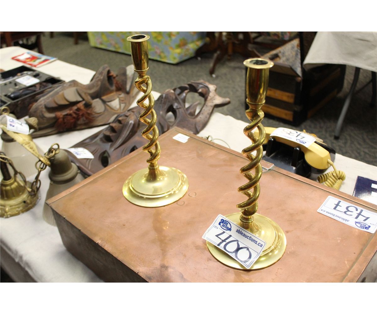 PAIR OF BARLEY TWIST CANDLE STICKS