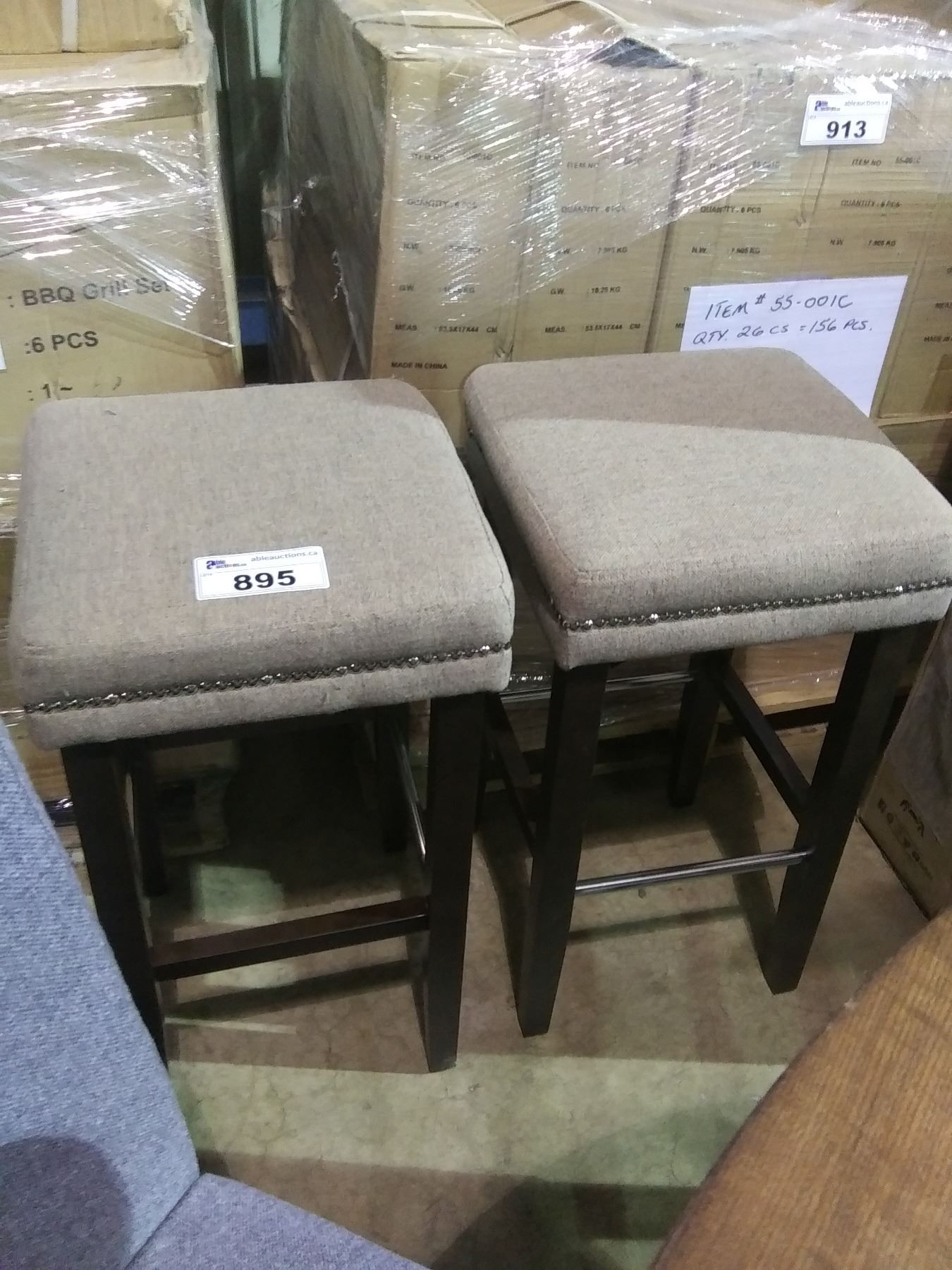 PAIR OF BEIGE FABRIC BAR HEIGHT STOOLS