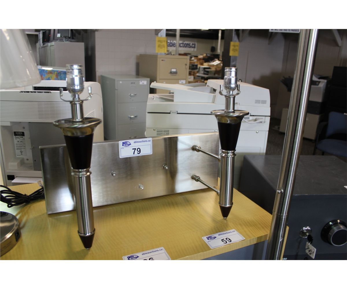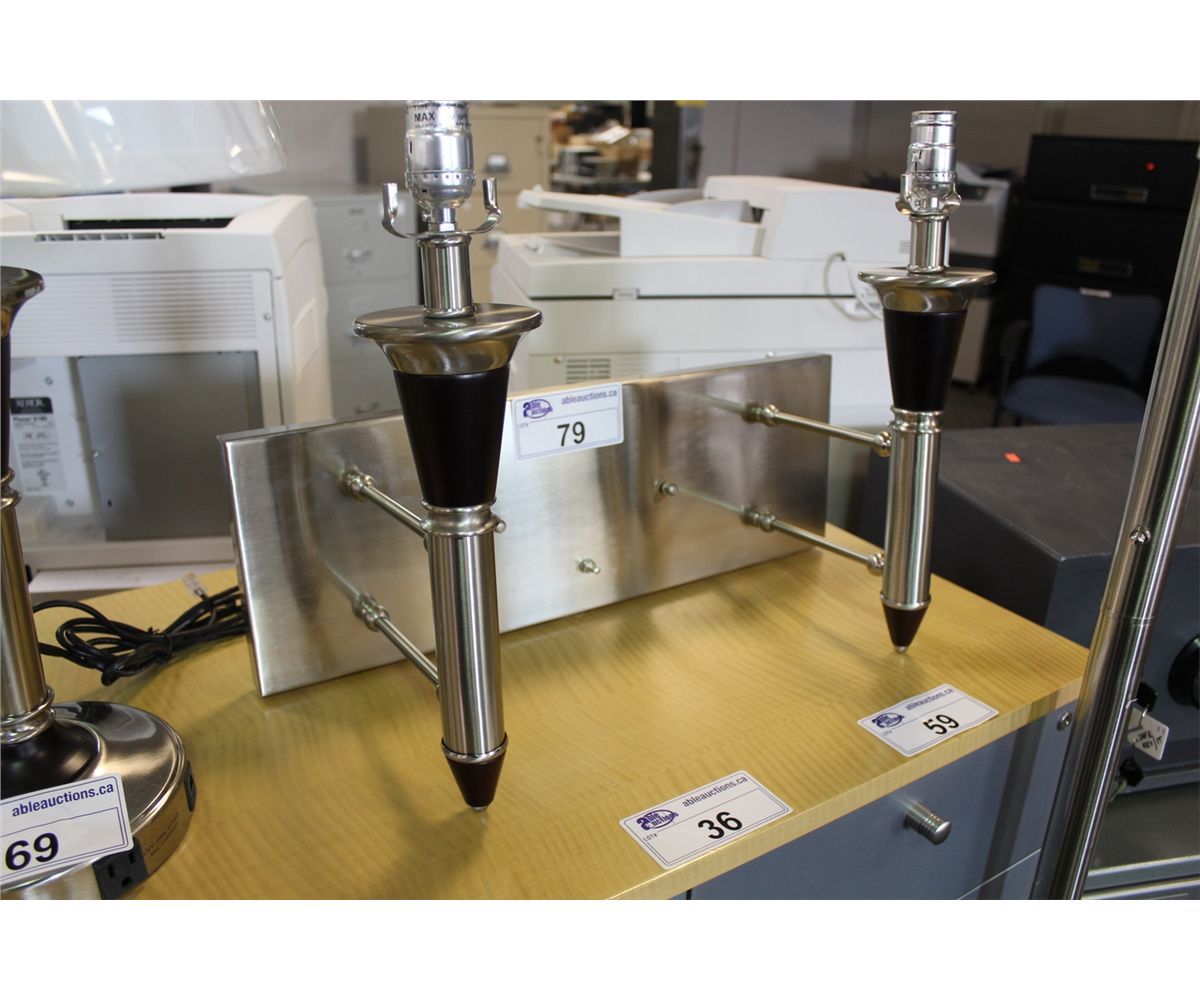 PAIR OF BLACK AND STAINLESS STEEL WALL MOUNT LAMPS
