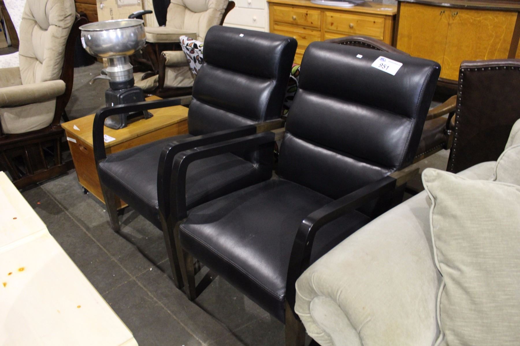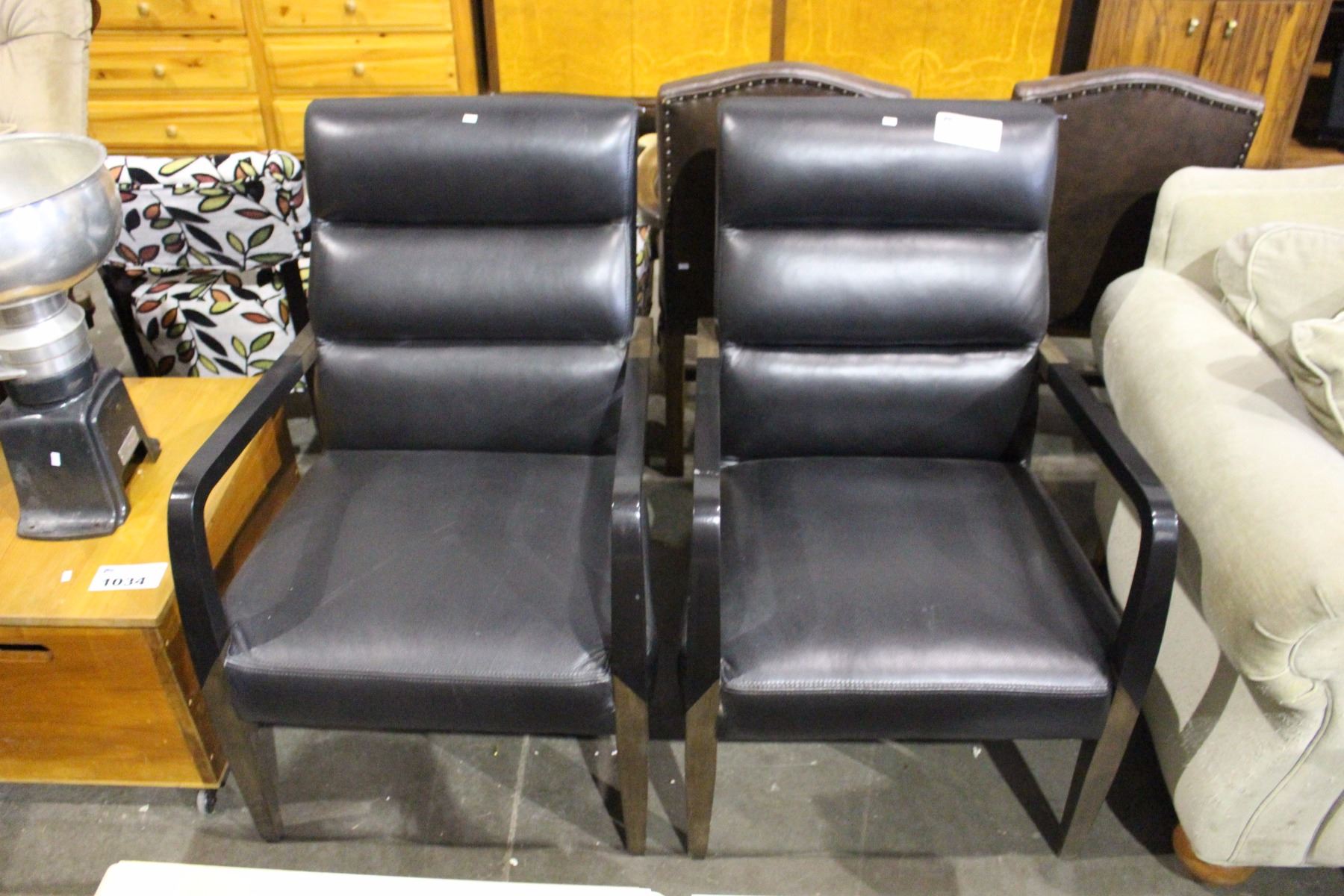 PAIR OF BLACK LEATHER OCCASIONAL CHAIRS