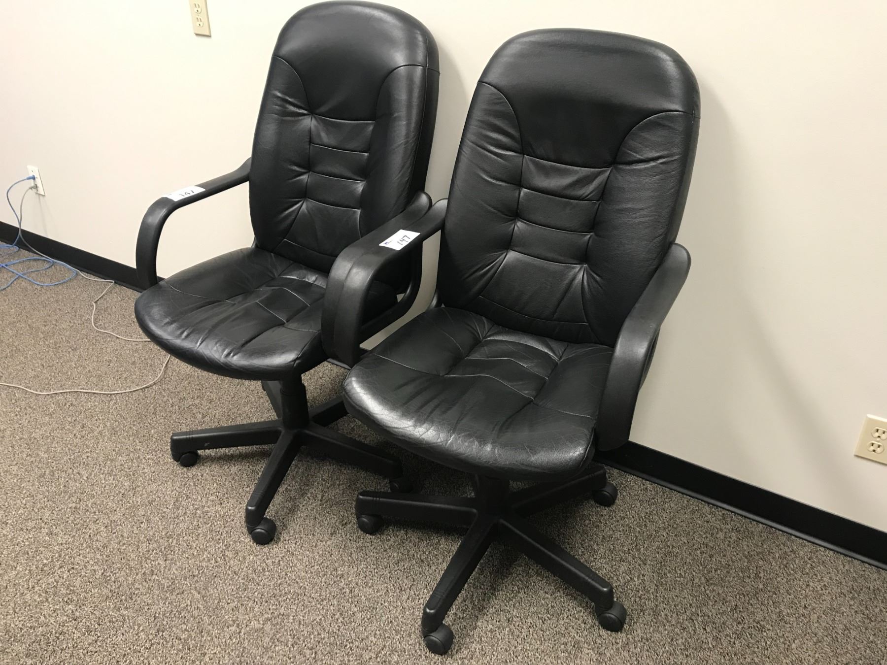 PAIR OF BLACK LEATHER OFFICE CHAIRS