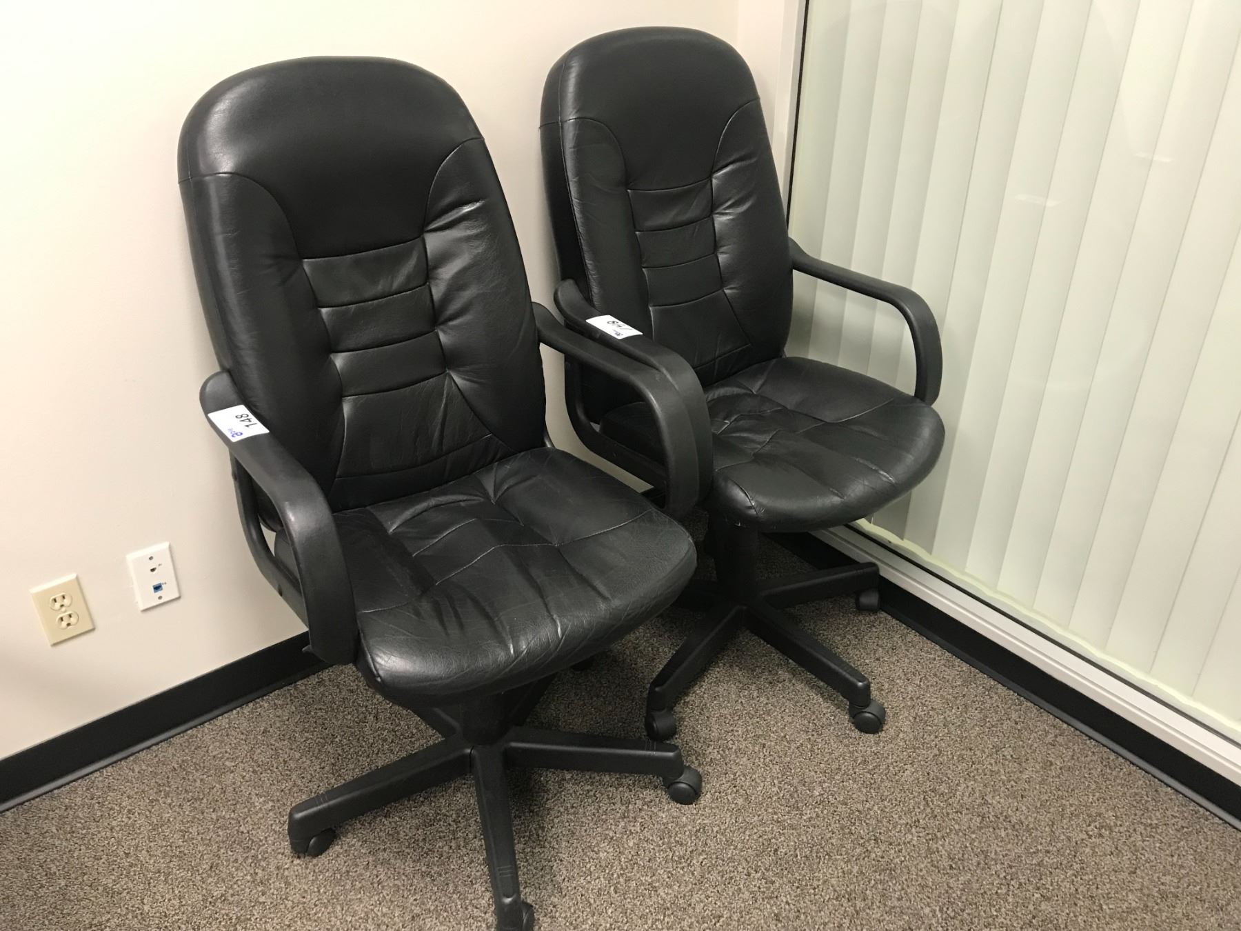 PAIR OF BLACK LEATHER OFFICE CHAIRS