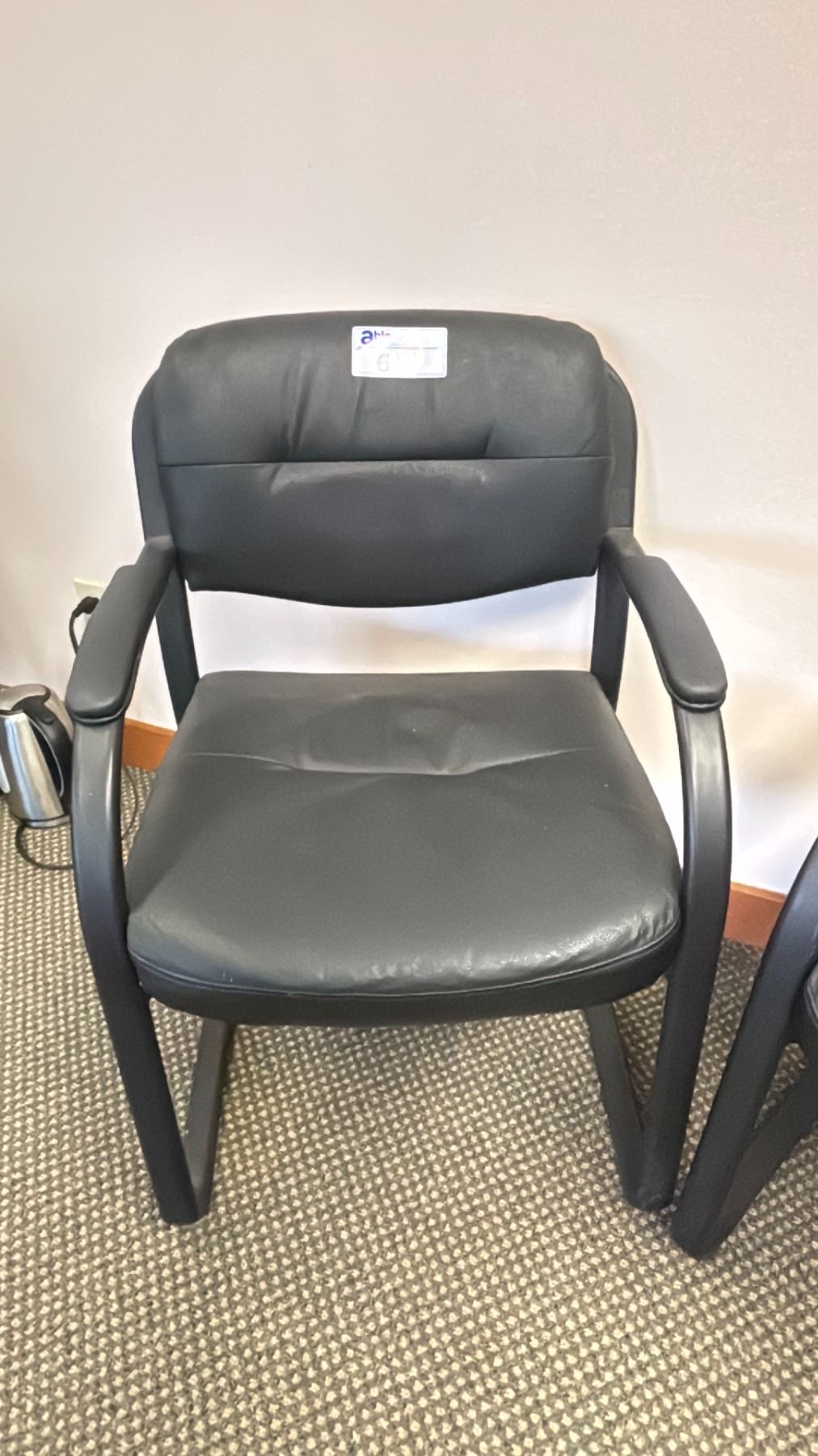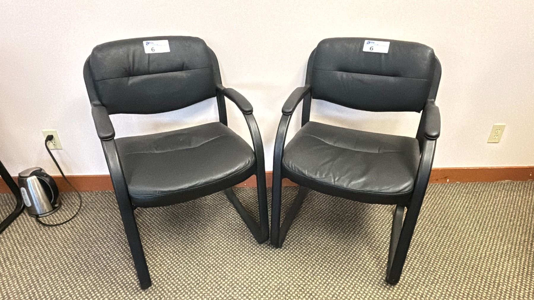 PAIR OF BLACK 'LEATHER' SLED BASE CLIENT CHAIRS