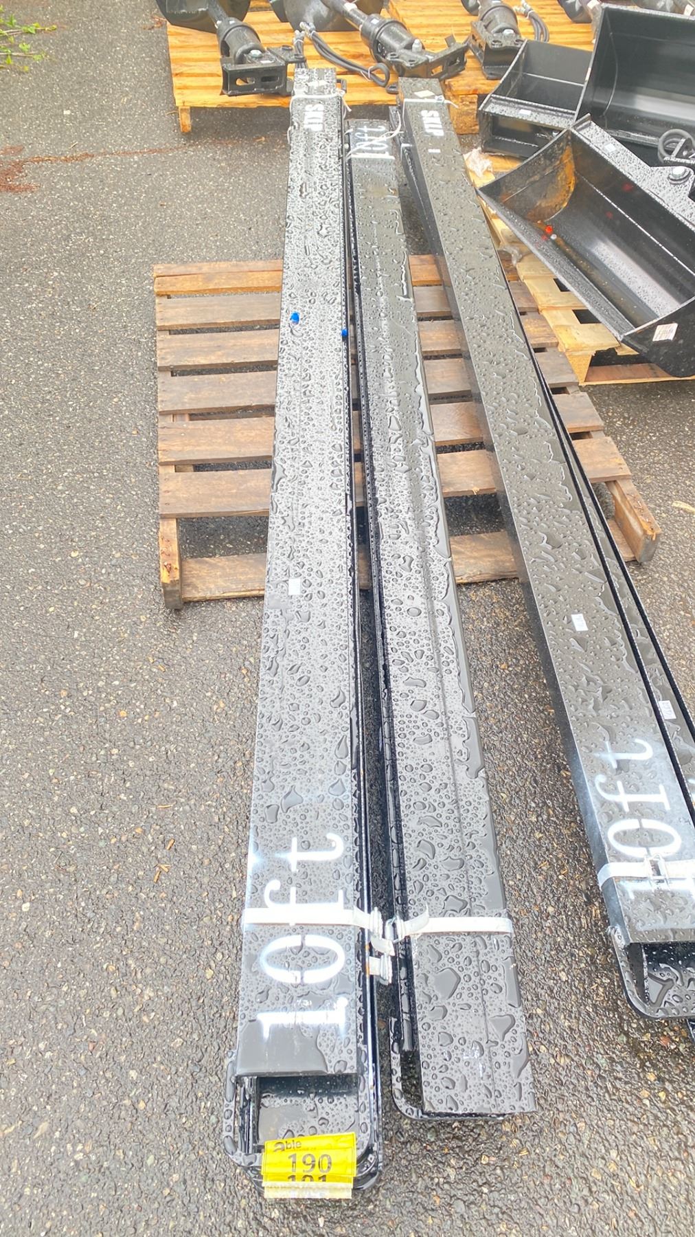 PAIR OF BLACK METAL INDUSTRIAL 10' FORKLIFT FORK EXTENSIONS