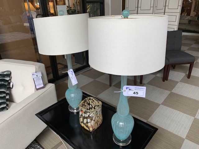 PAIR OF BLUE GLASS BAKELY TABLE LAMPS