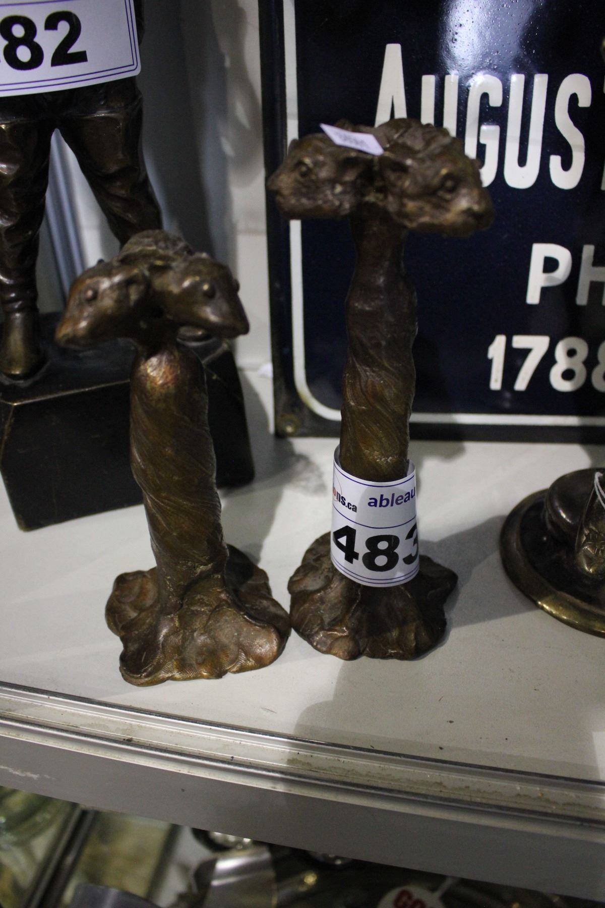 PAIR OF BRONZE FOLK ART CANDLESTICKS (CAT AND MOUSE)