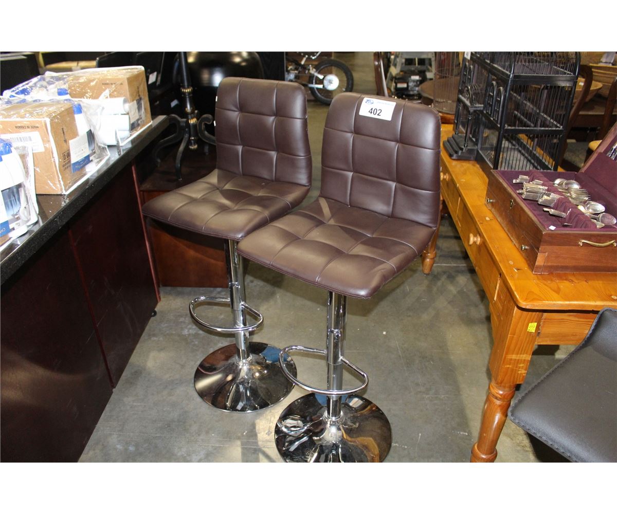 PAIR OF BROWN AND CHROME GAS LIFT BAR STOOLS