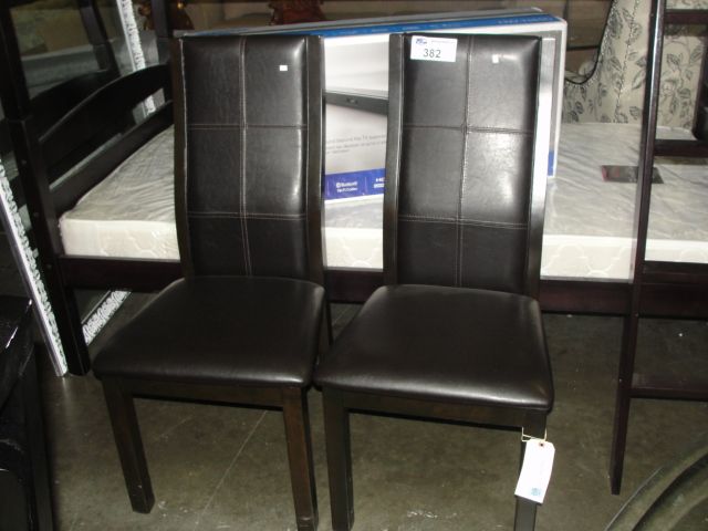 PAIR OF BROWN LEATHER UPHOLSTERED SIDE CHAIRS