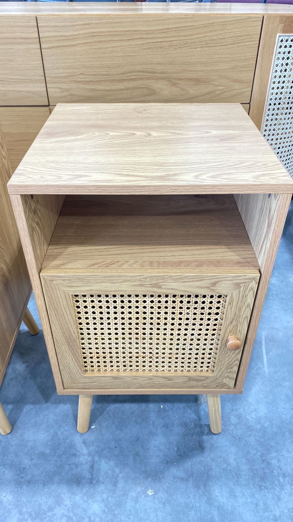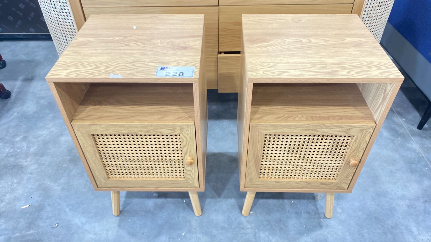 PAIR OF CANED DOOR END TABLES 16" X 15.5" X 27.5"H
