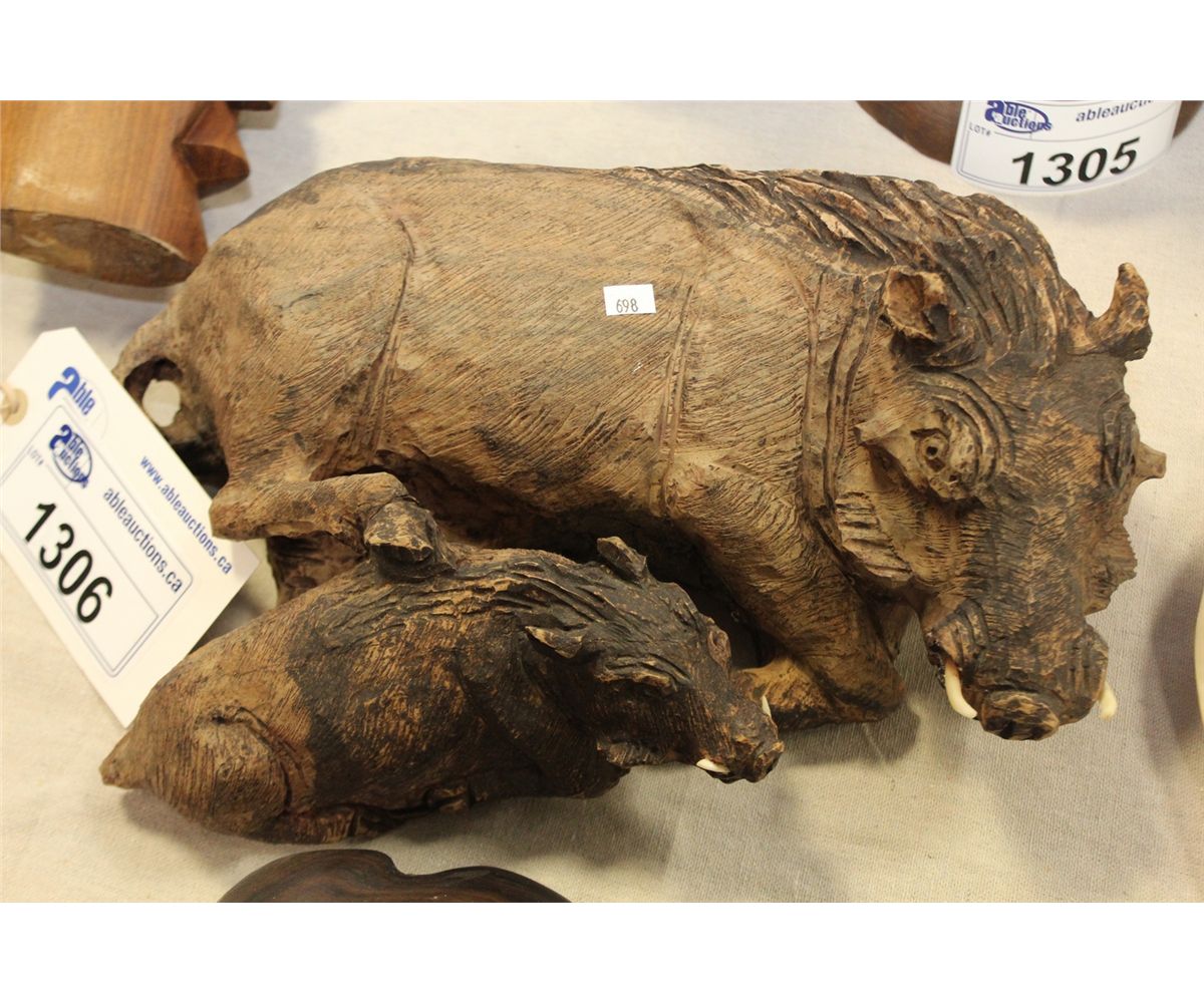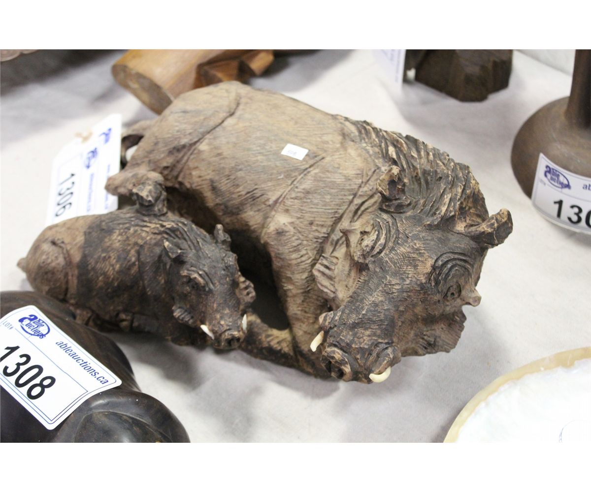 PAIR OF CARVED DRIFTWOOD WATER BUFFALO