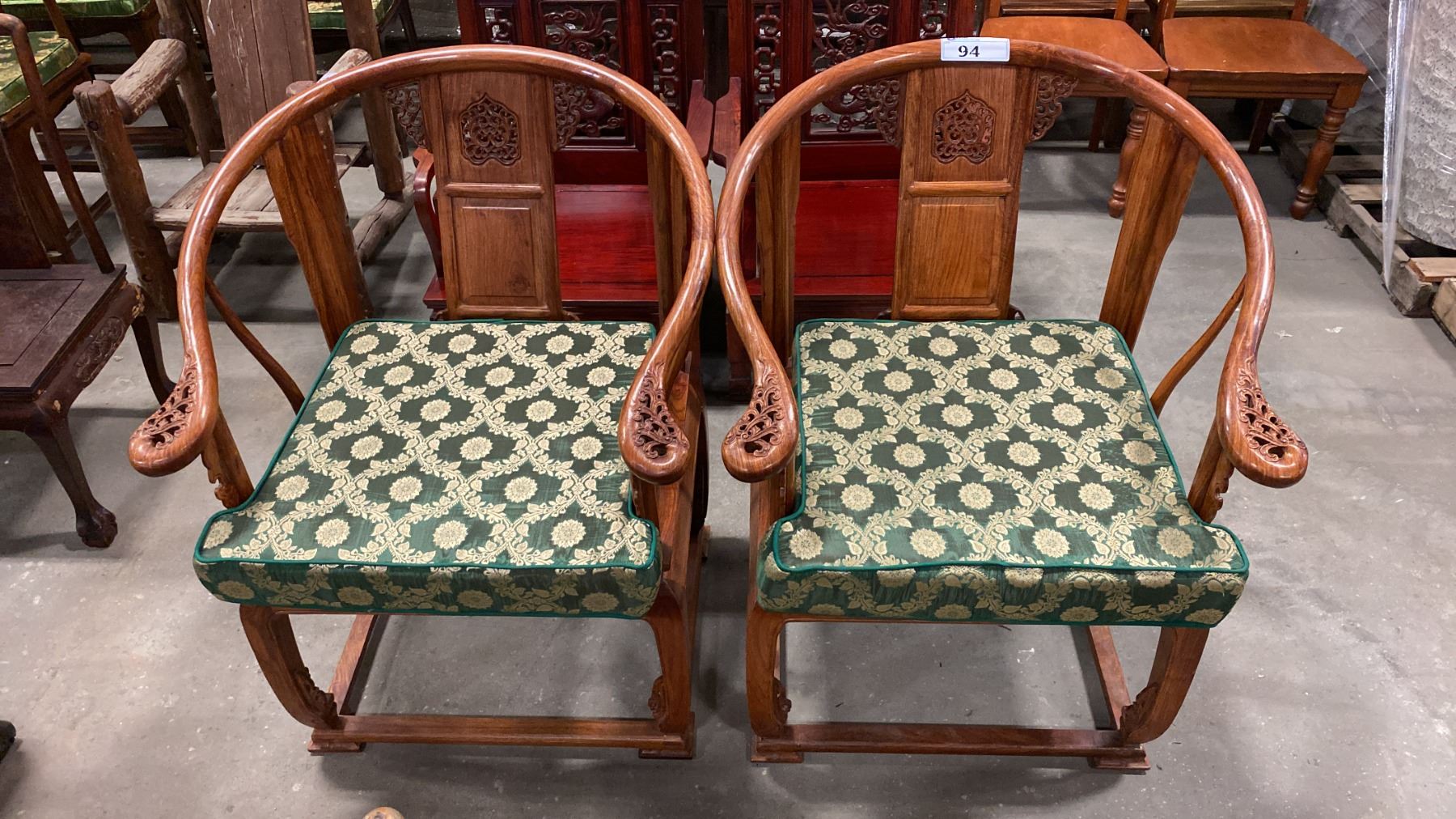 PAIR OF CARVED HARDWOOD ASIAN ARM CHAIRS