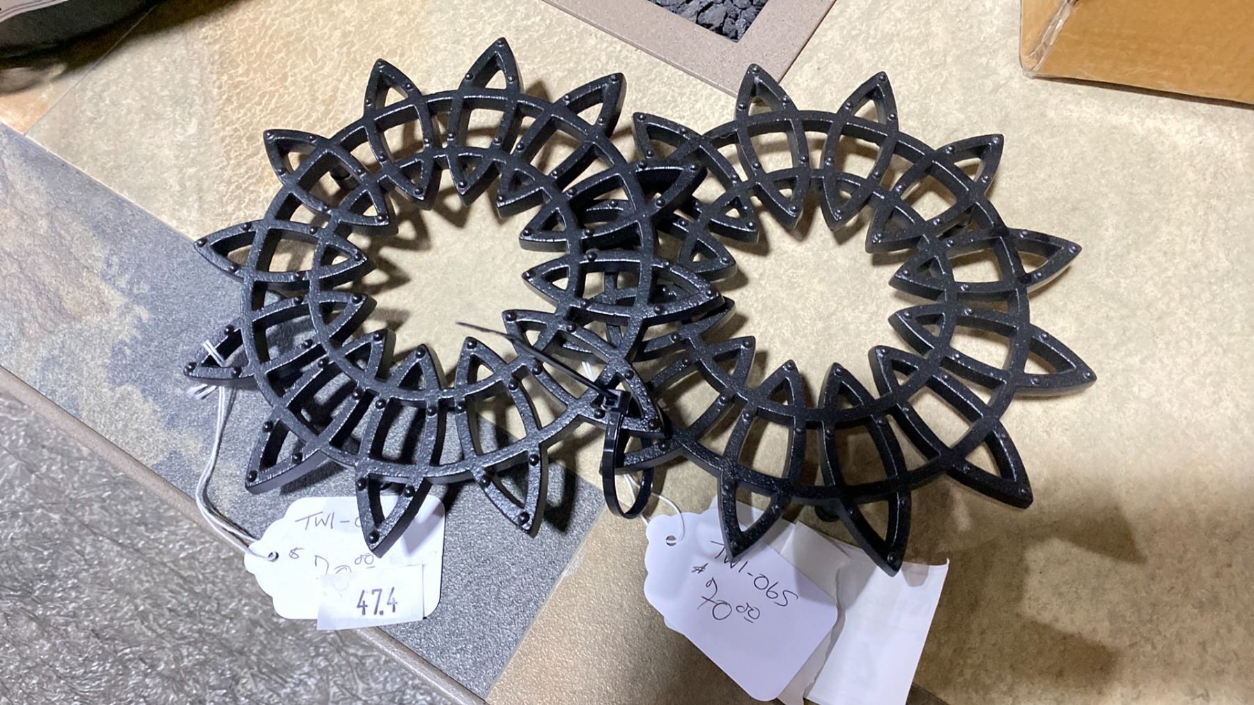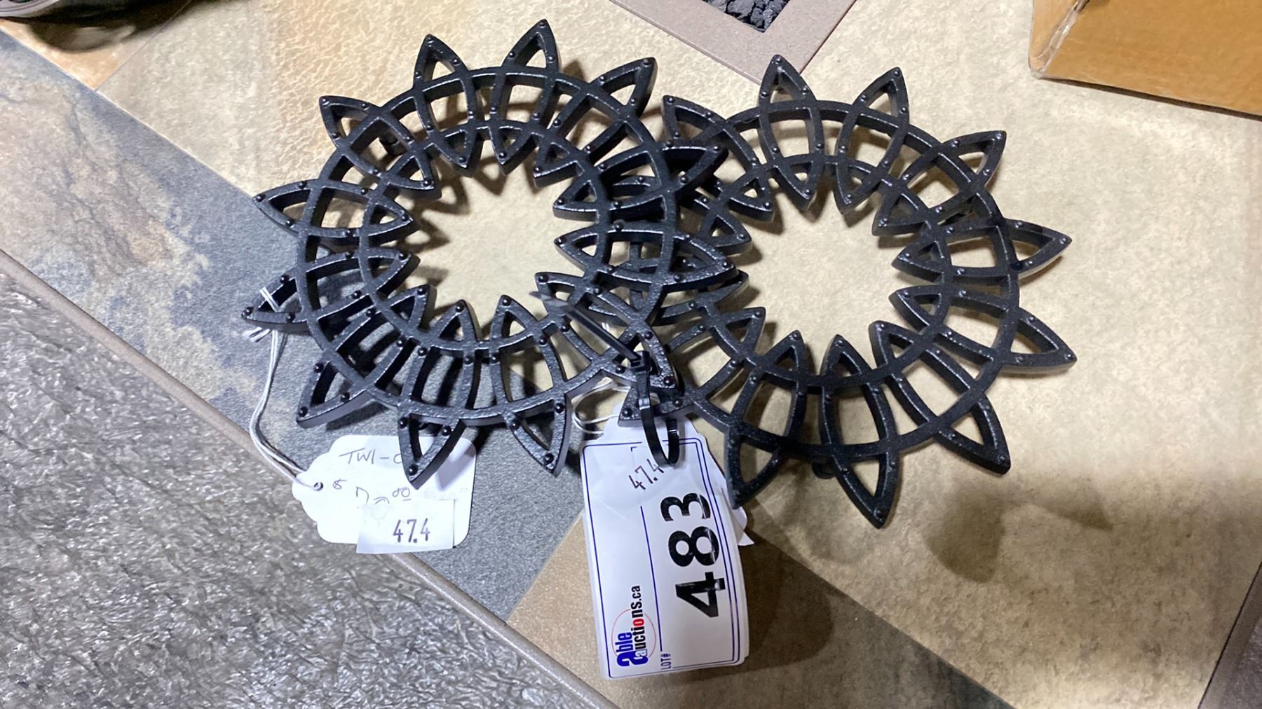 PAIR OF CAST IRON FLOWER TRIVETS RETAIL $140