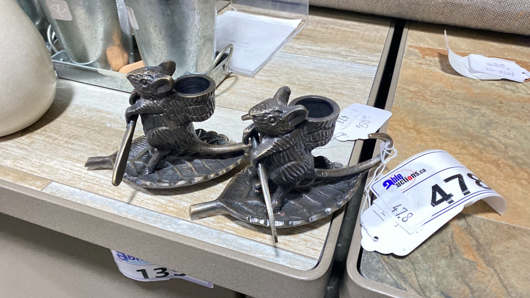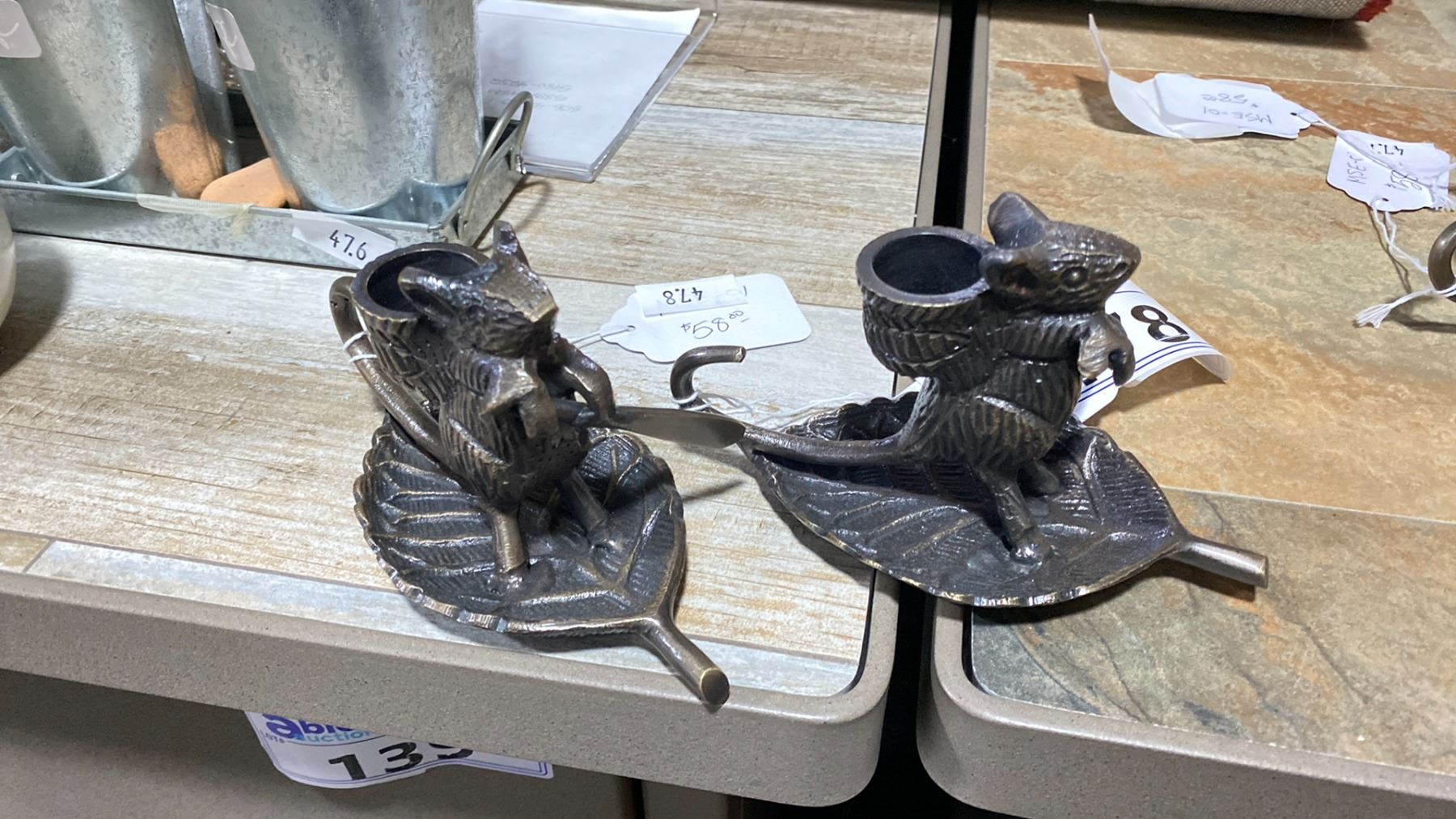 PAIR OF CAST IRON MOUSE CANDLE HOLDERS RETAIL $116
