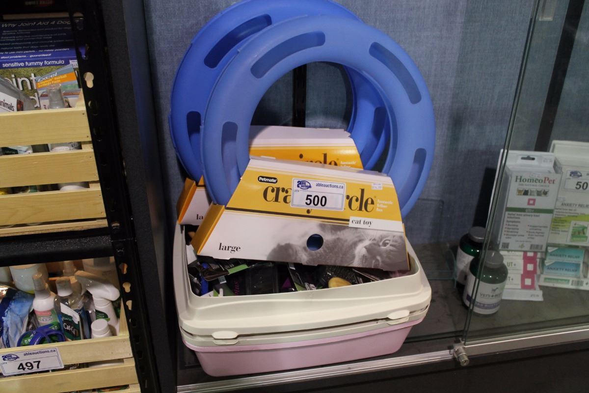 PAIR OF CAT PET-MATE CRAZY CIRCLES, LITTER BOXES & ASSORTED GROOMING TOOLS