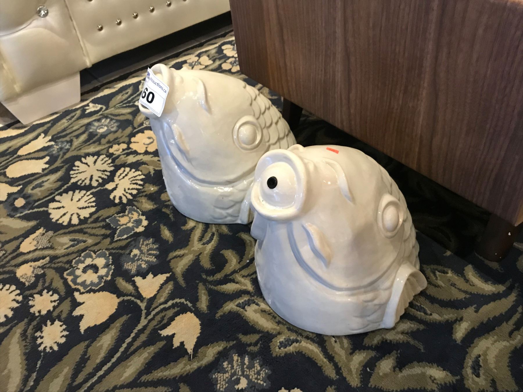 PAIR OF CERAMIC KOI FOUNTAIN HEADS