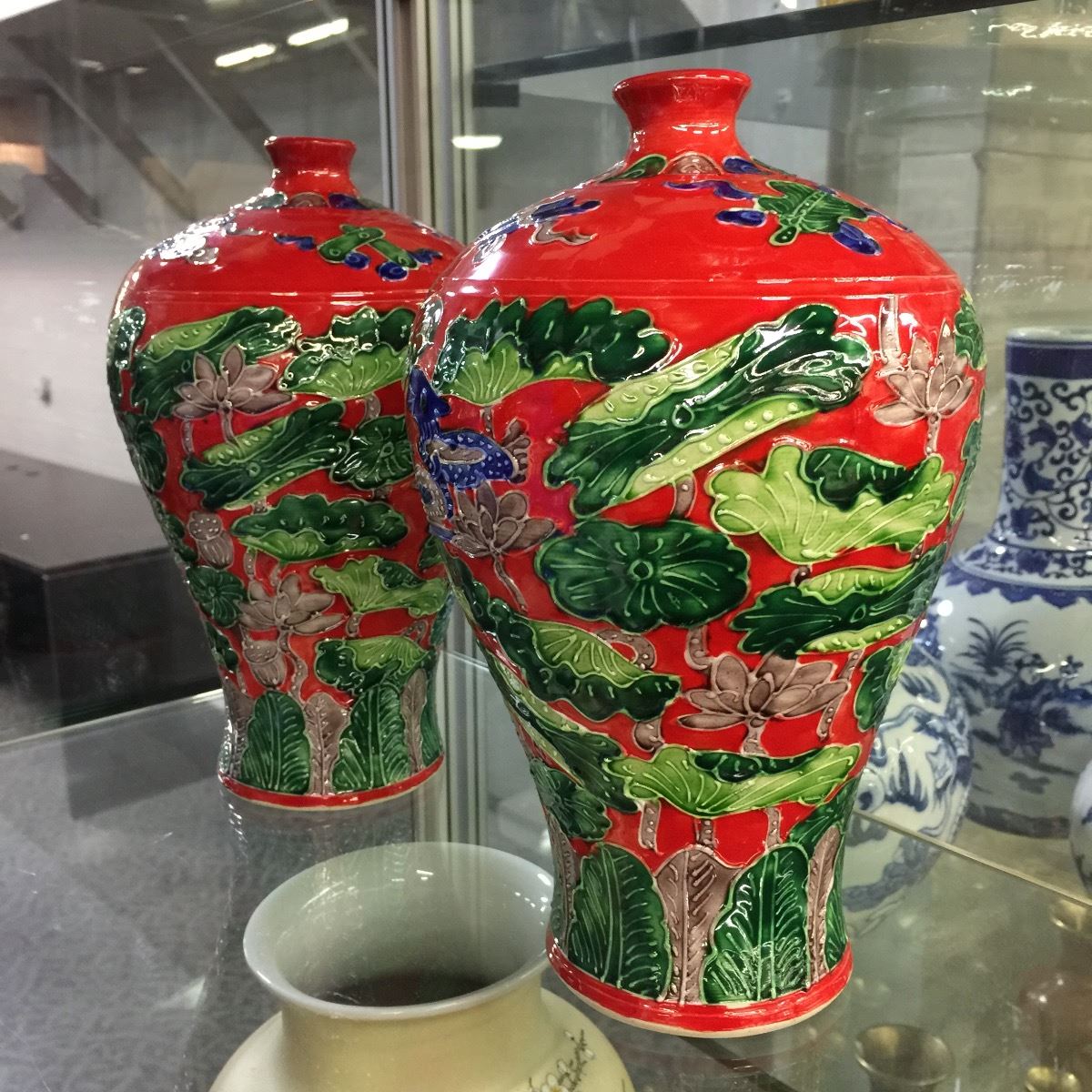 PAIR OF CHINESE FAMILLE ROSE MING STYLE VASES, 10'' H