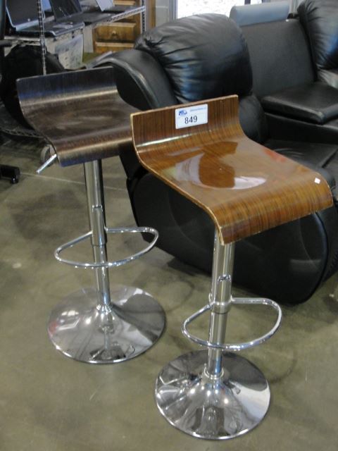 PAIR OF CHROME WITH BENTWOOD SEAT GAS LIFT BAR STOOL