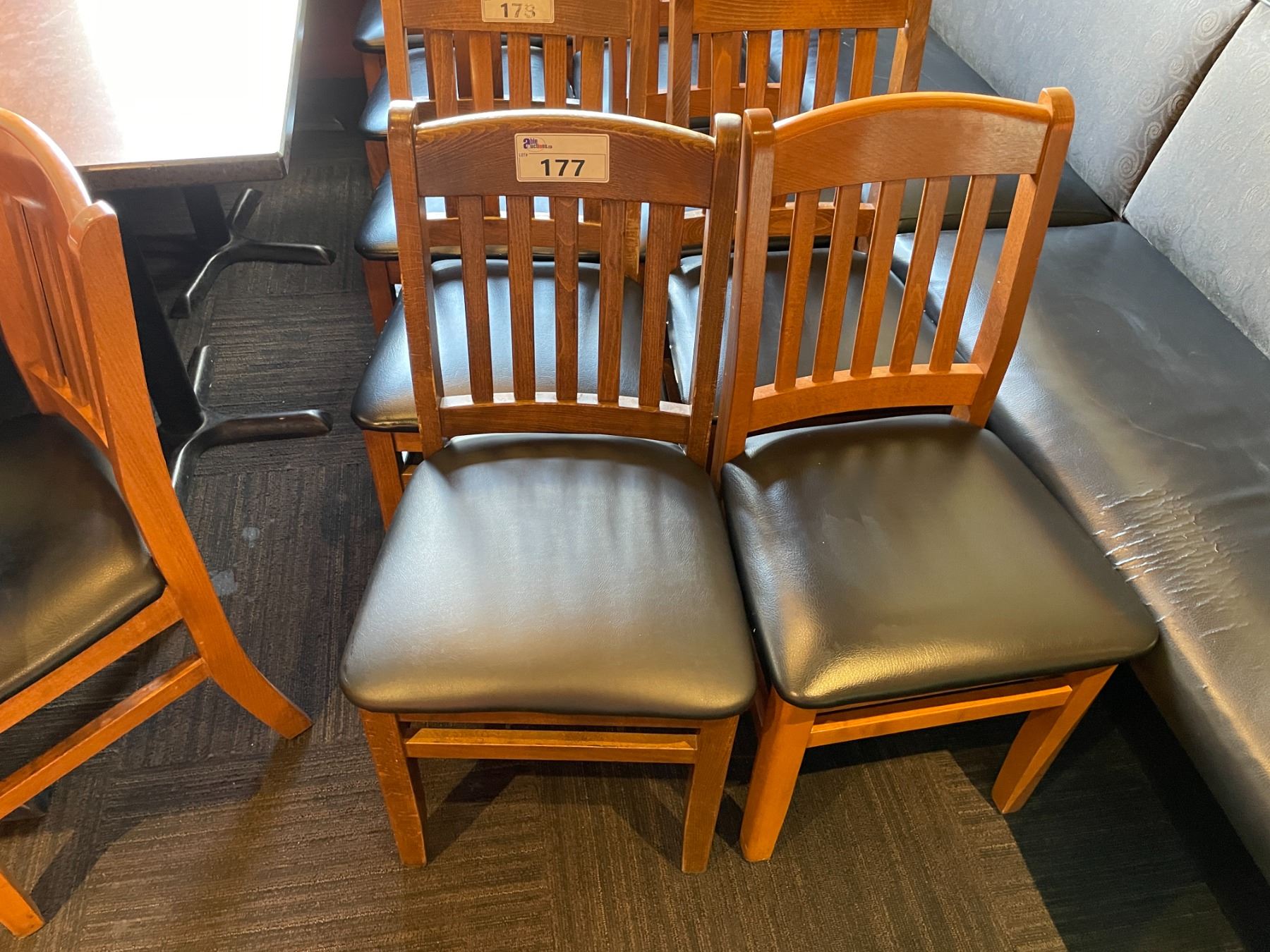 PAIR OF DARK WOOD & BLACK RESTAURANT DINING CHAIRS