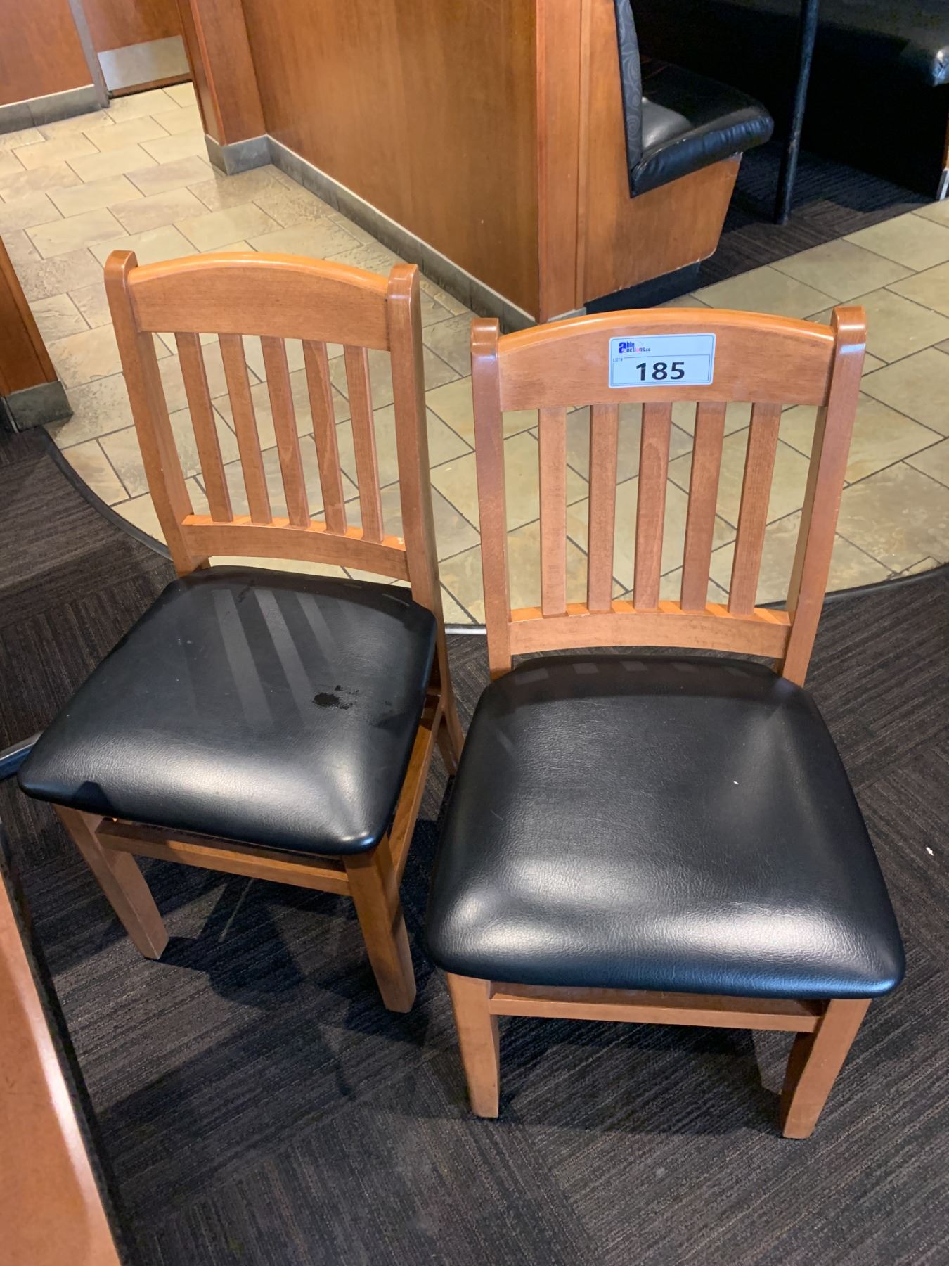 PAIR OF DARK WOOD & BLACK RESTAURANT DINING CHAIRS