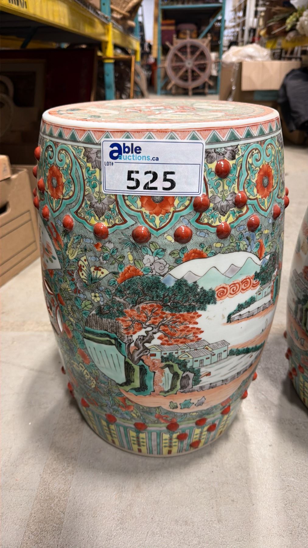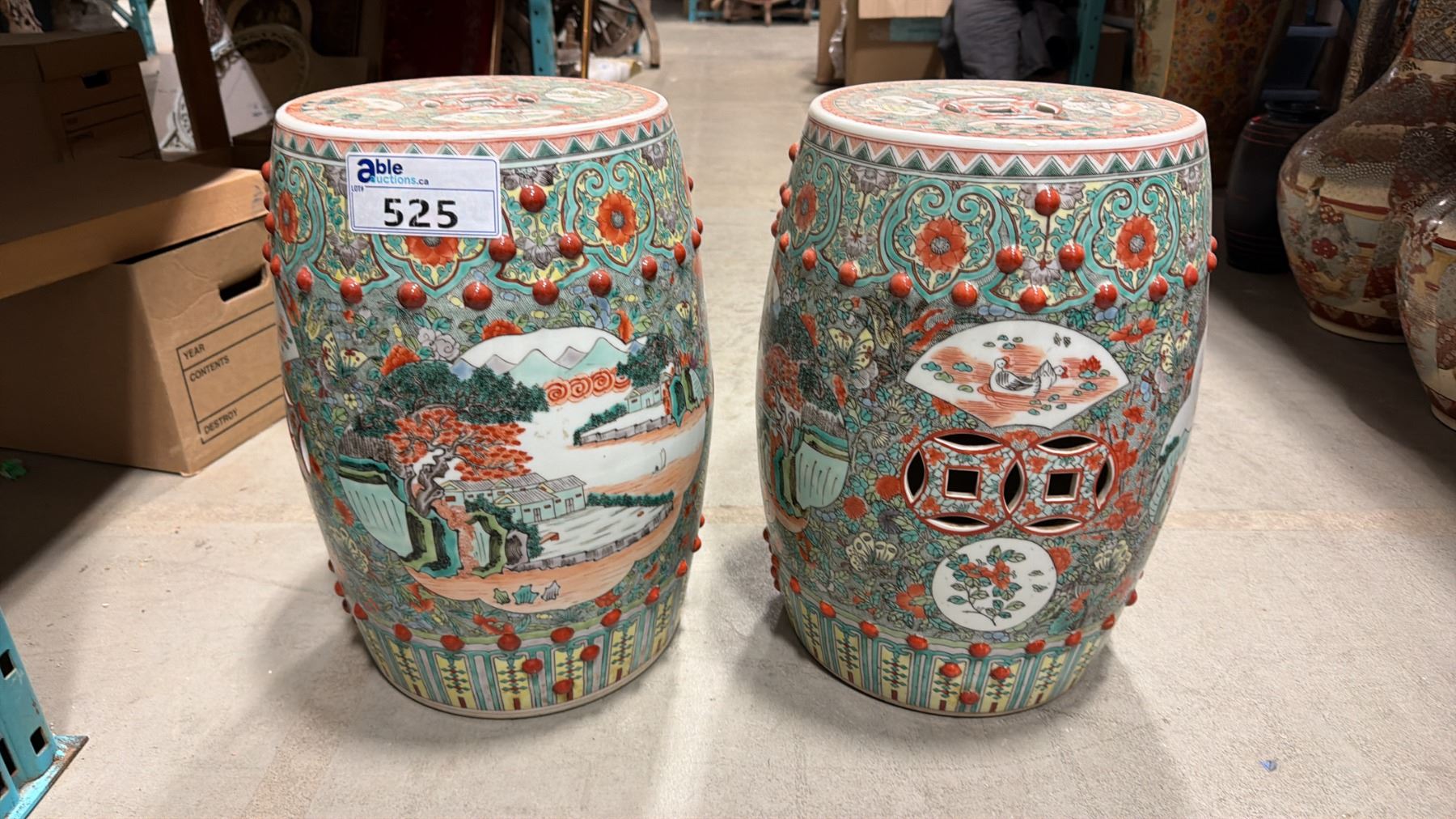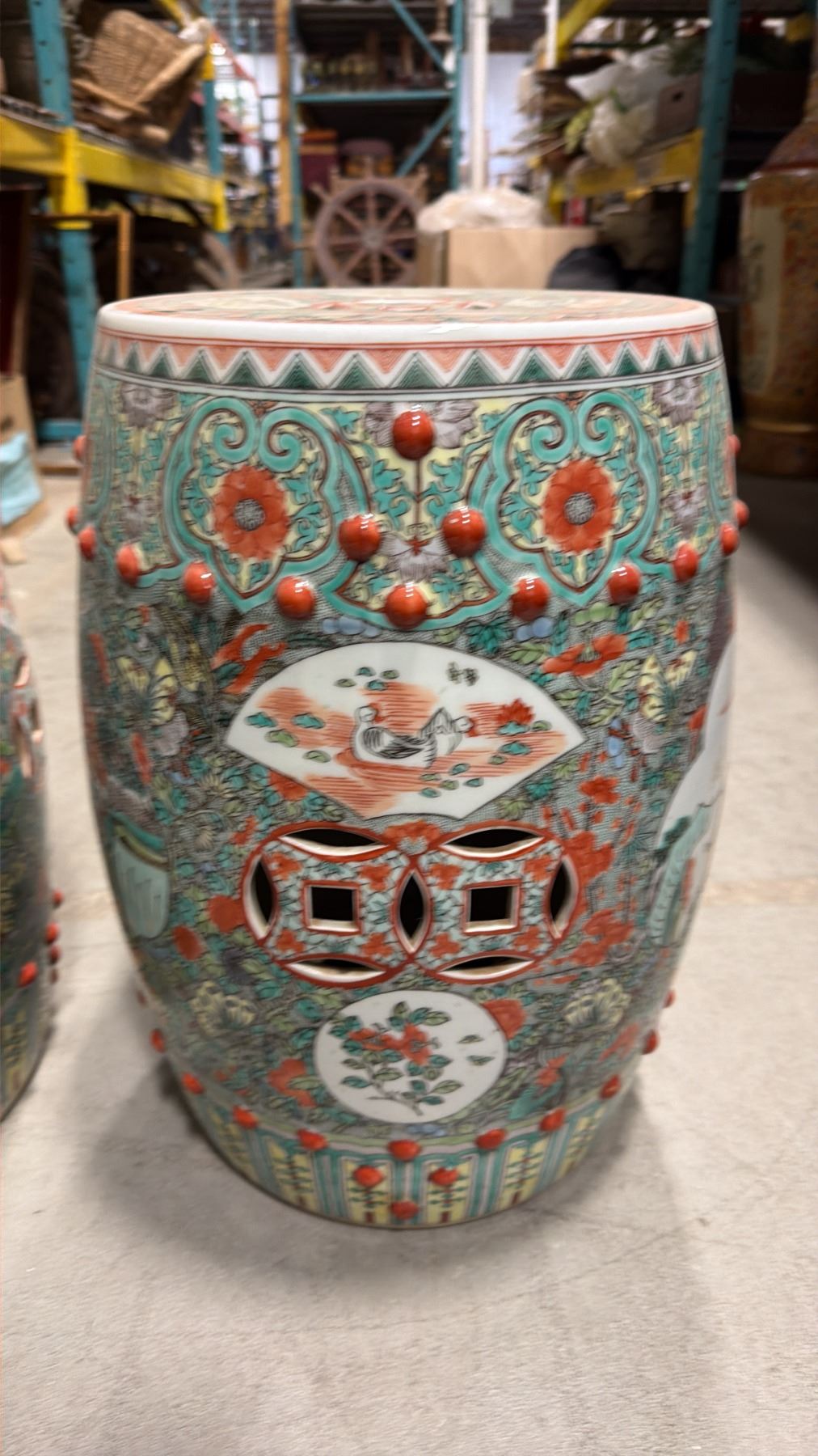PAIR OF DECORATIVE CERAMIC GARDEN STOOLS