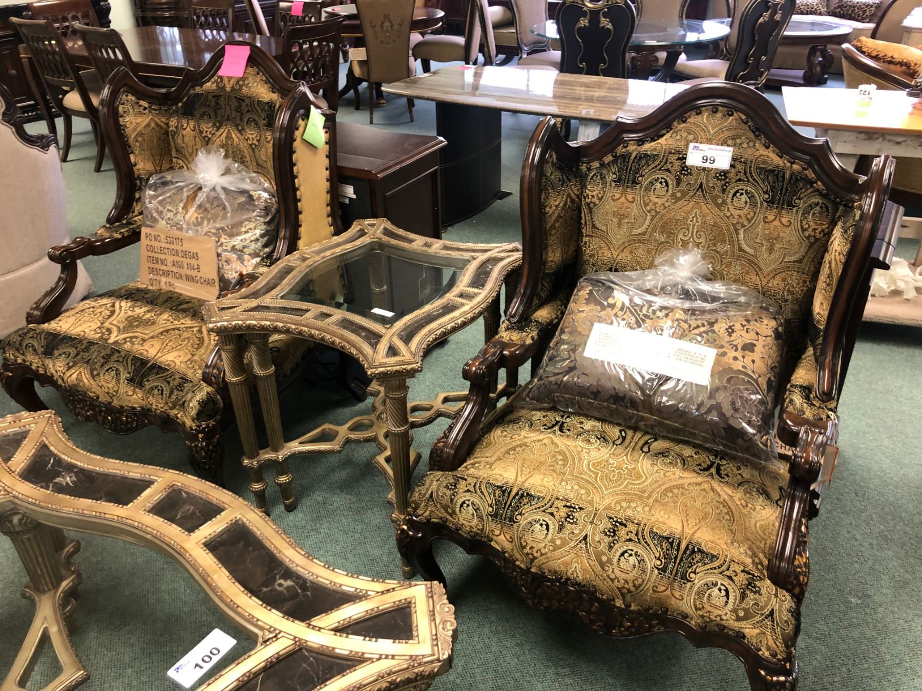 PAIR OF DEGAS WING BACK CHAIRS. RETAIL $2,580.00 EACH