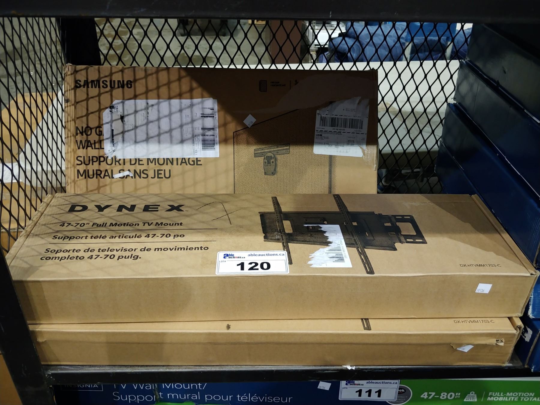 PAIR OF DYNEX 47-70" FULL-MOTION WALL MOUNTS AND SAMSUNG WALL MOUNT