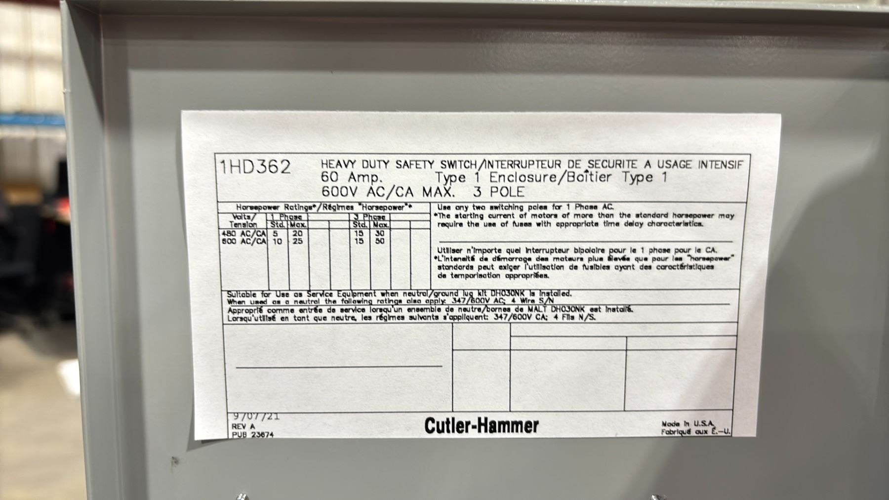 PAIR OF EATON HEAVY DUTY SAFETY SWITCHES MODEL NUMBER 1HD362 ( 2 BOXES )