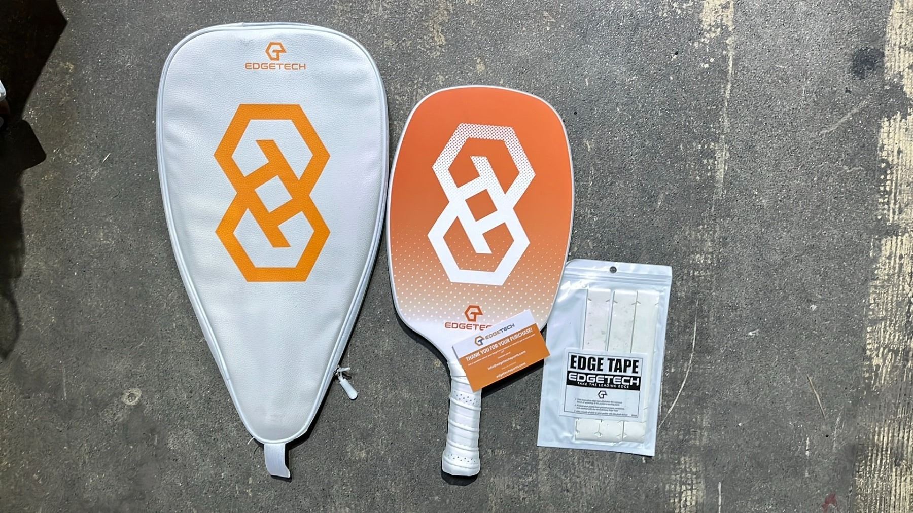 PAIR OF EDGETECH PICKLEBALL PADDLES IN A SOFT TRANSPORT CASE WITH EDGE GUARD TAPE INCLUDED