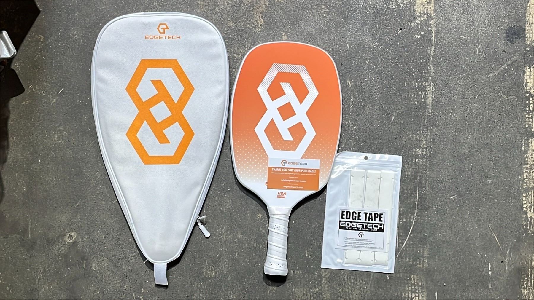 PAIR OF EDGETECH PICKLEBALL PADDLES IN A SOFT TRANSPORT CASE WITH EDGE GUARD TAPE INCLUDED