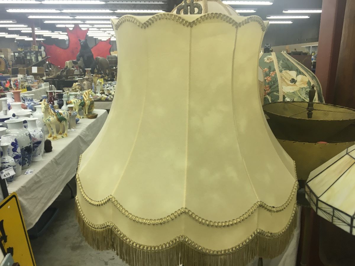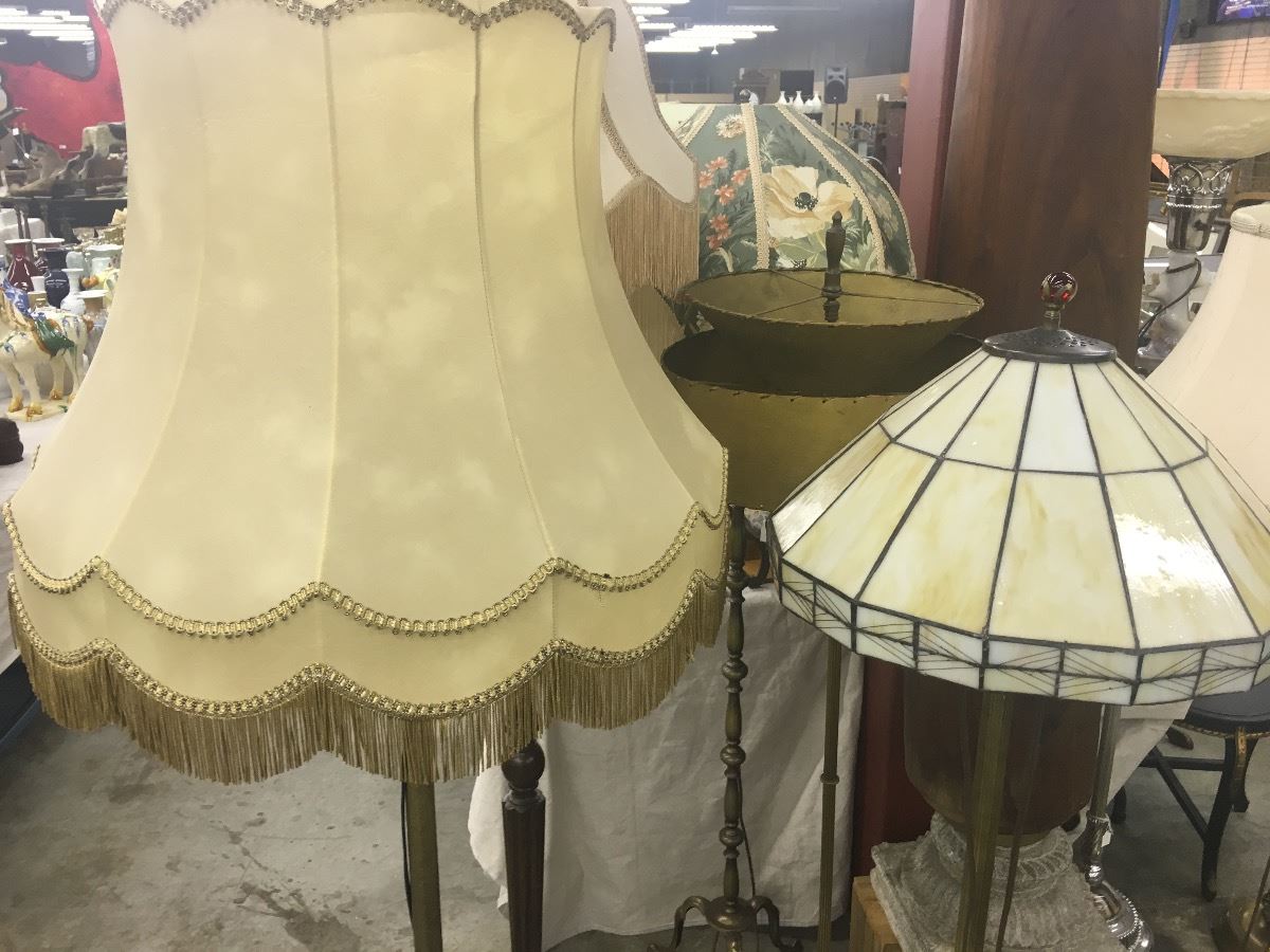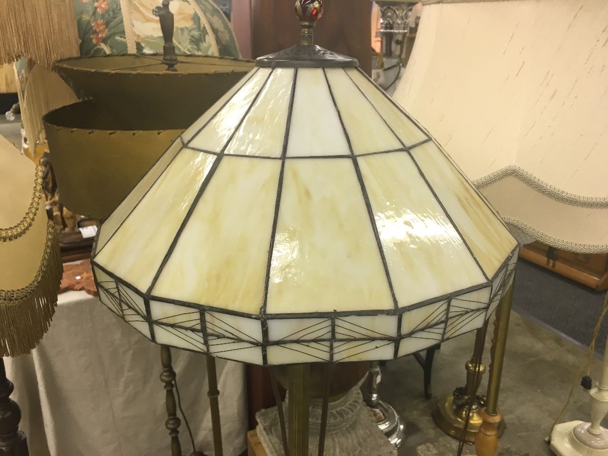 PAIR OF FLOOR LAMPS WITH CLOTHE SHADE AND GLASS TIFFANY STYLE SHADE