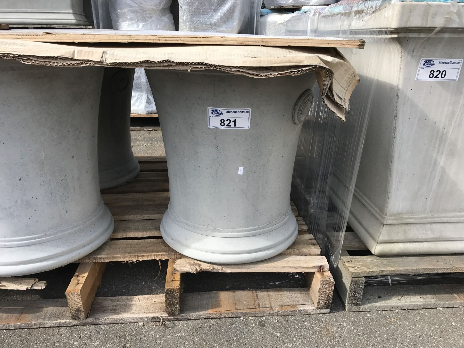 PAIR OF GARDEN STONE SHORT ROUND CEMENT PLANTERS