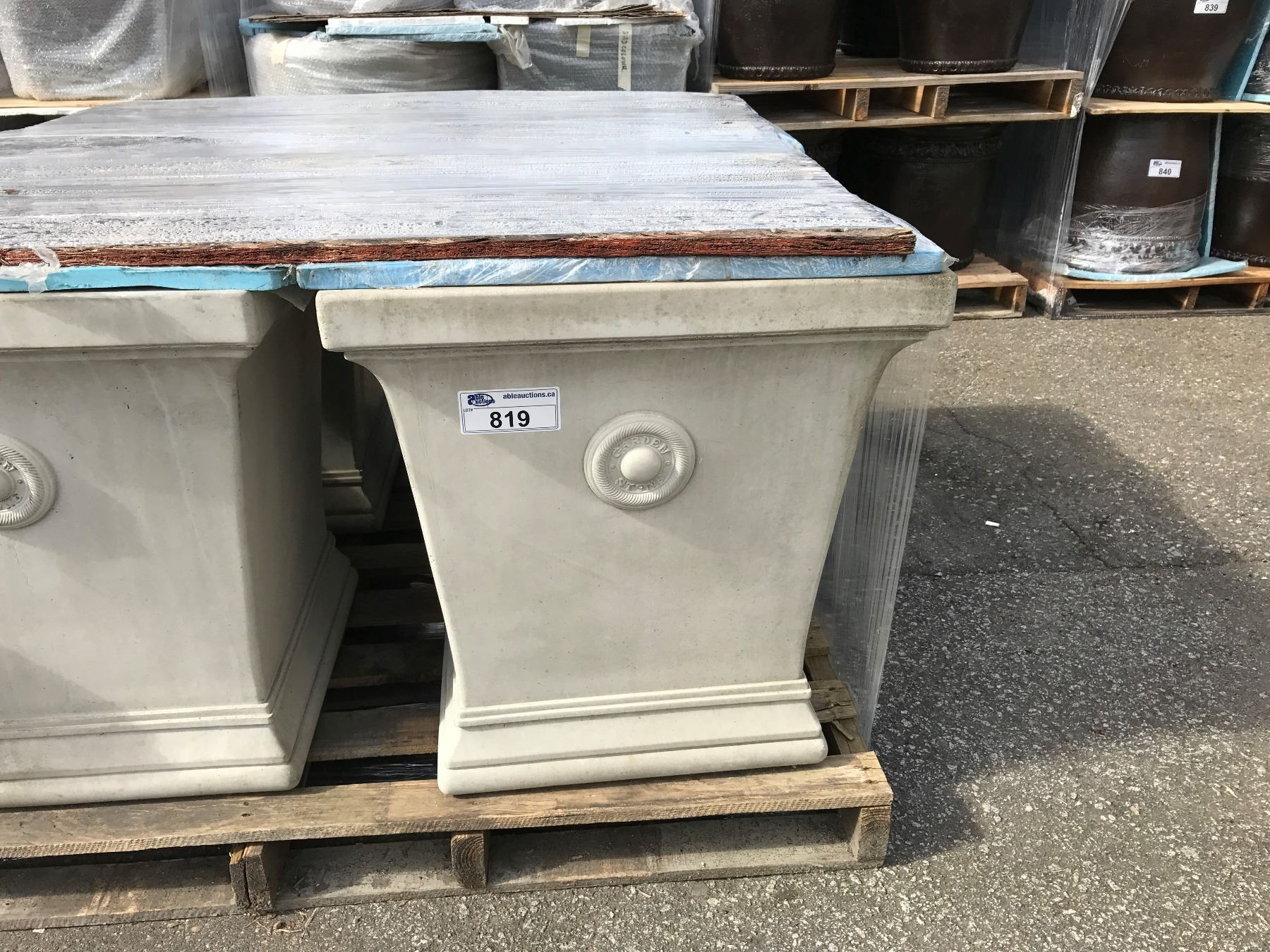 PAIR OF GARDEN STONE SHORT SQUARE CEMENT PLANTERS