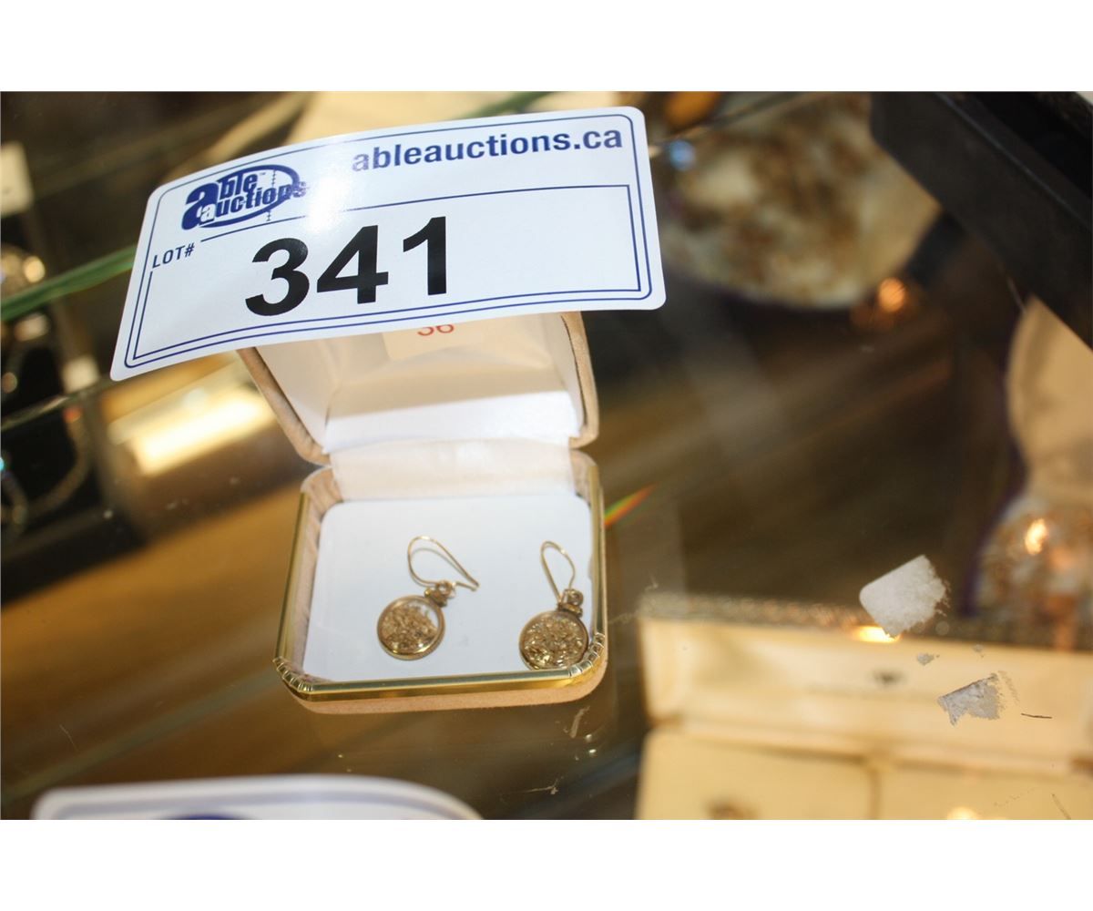 PAIR OF GOLD NUGGET ENCASED IN GLASS EARRINGS
