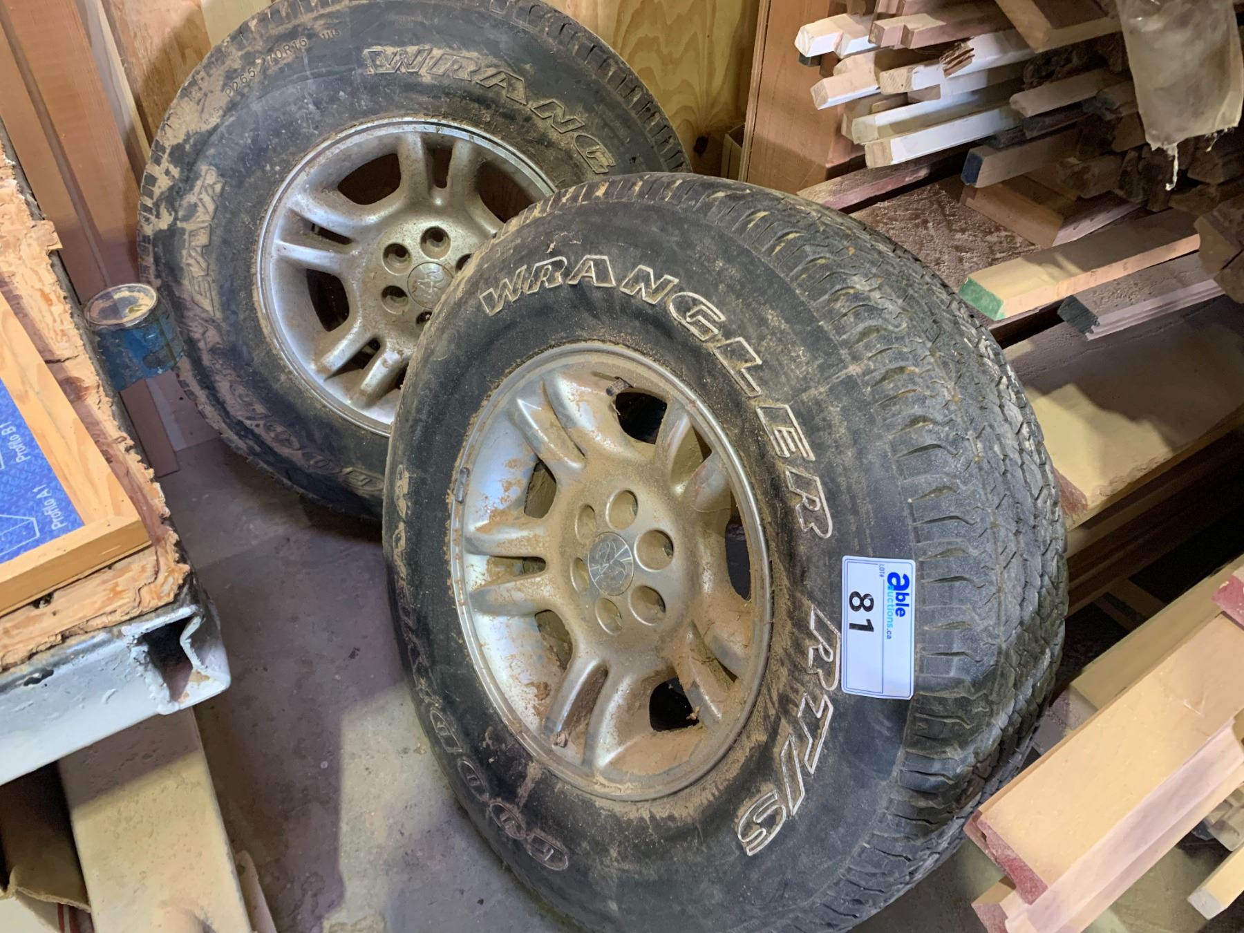 PAIR OF GOODYEAR WRANGLER P265/70 R16 11S M+S VEHICLE TIRES WITH RIMS