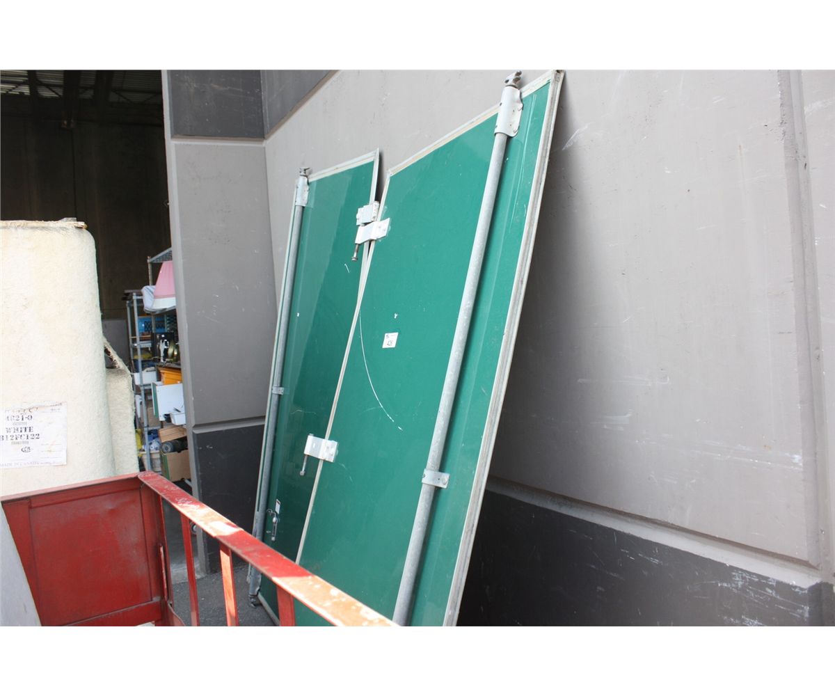 PAIR OF GREEN TRAILER SWING DOORS WITH CAMS