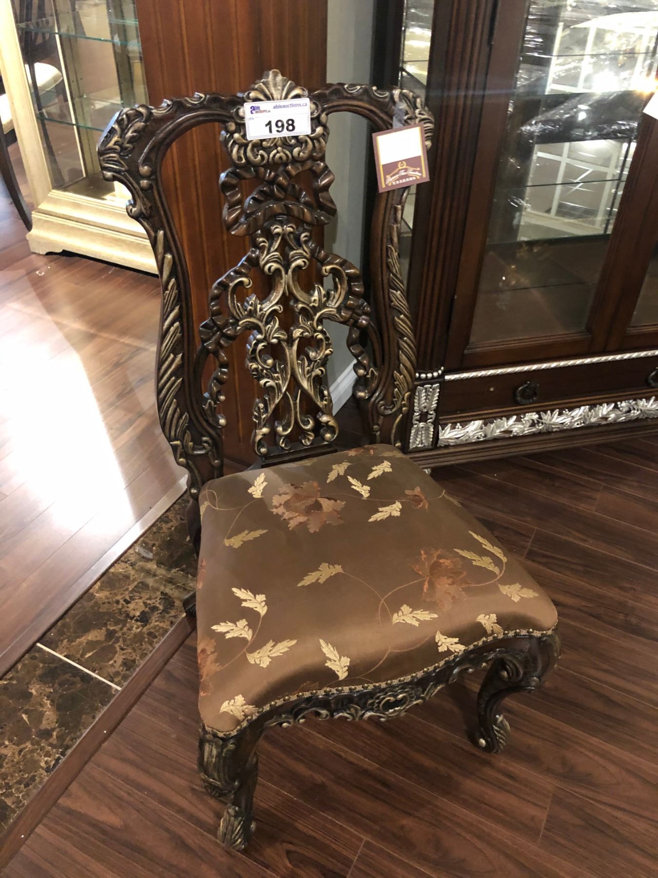 PAIR OF HALL CHAIRS WITH CARVED WOODEN BACKS. RETAIL $1,840.00