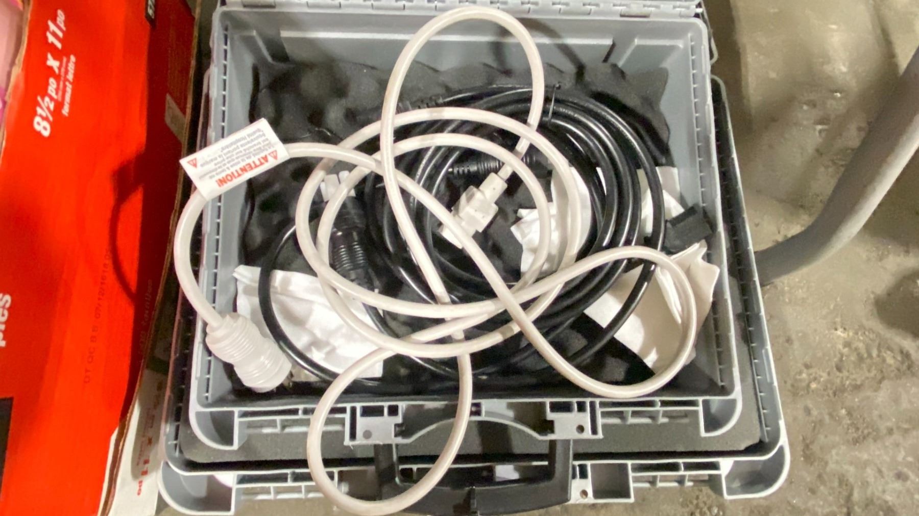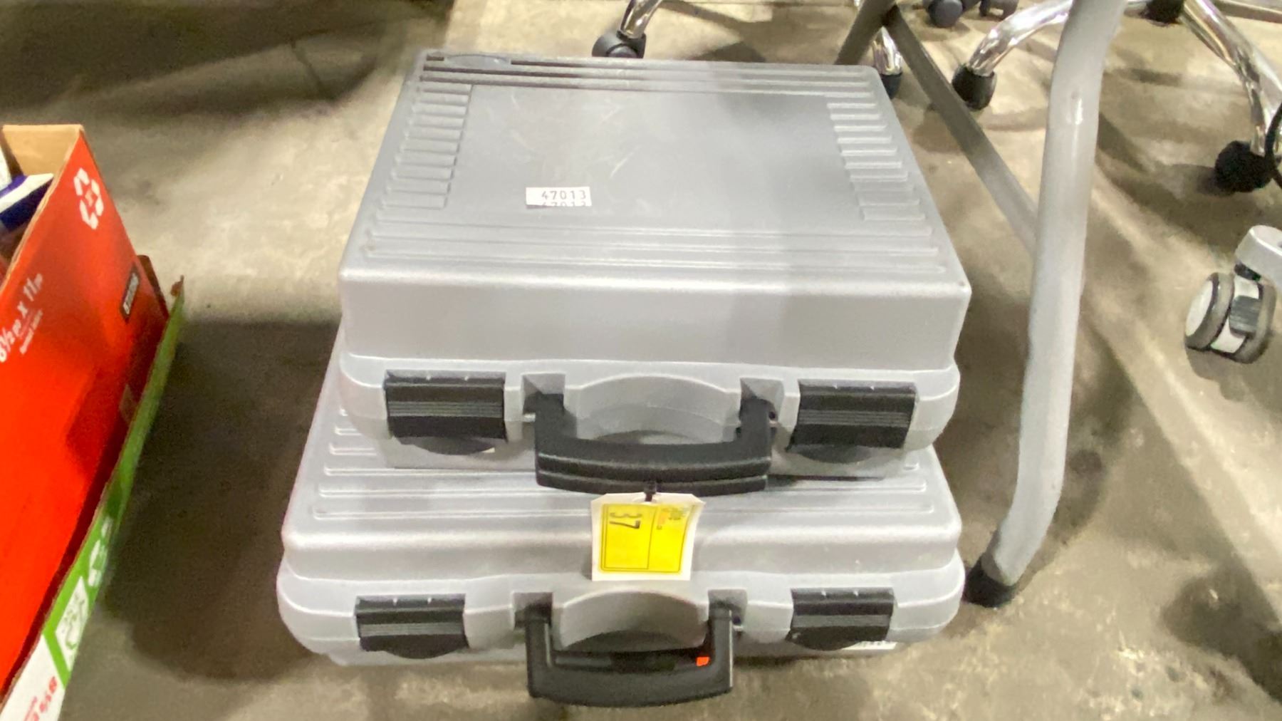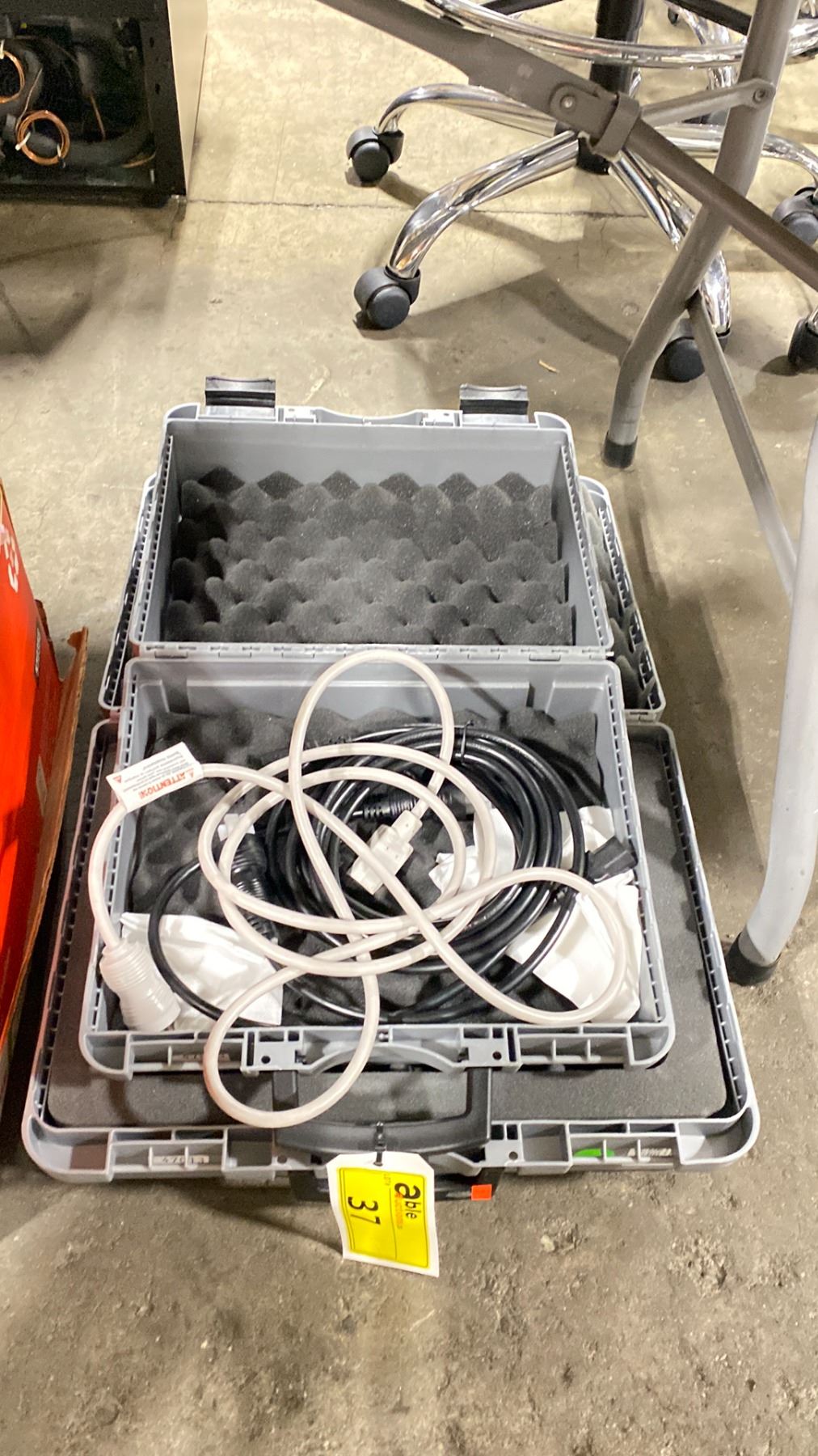 PAIR OF HARD TRANSPORT CASES & 3 POWER CABLES