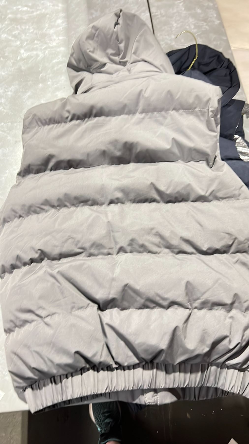 PAIR OF HEATIT.CA PUFFER STYLE RECHARGEABLE BATTERY OPERATED HEATED VESTS 1 BLUE, 1 GREY SIZE L