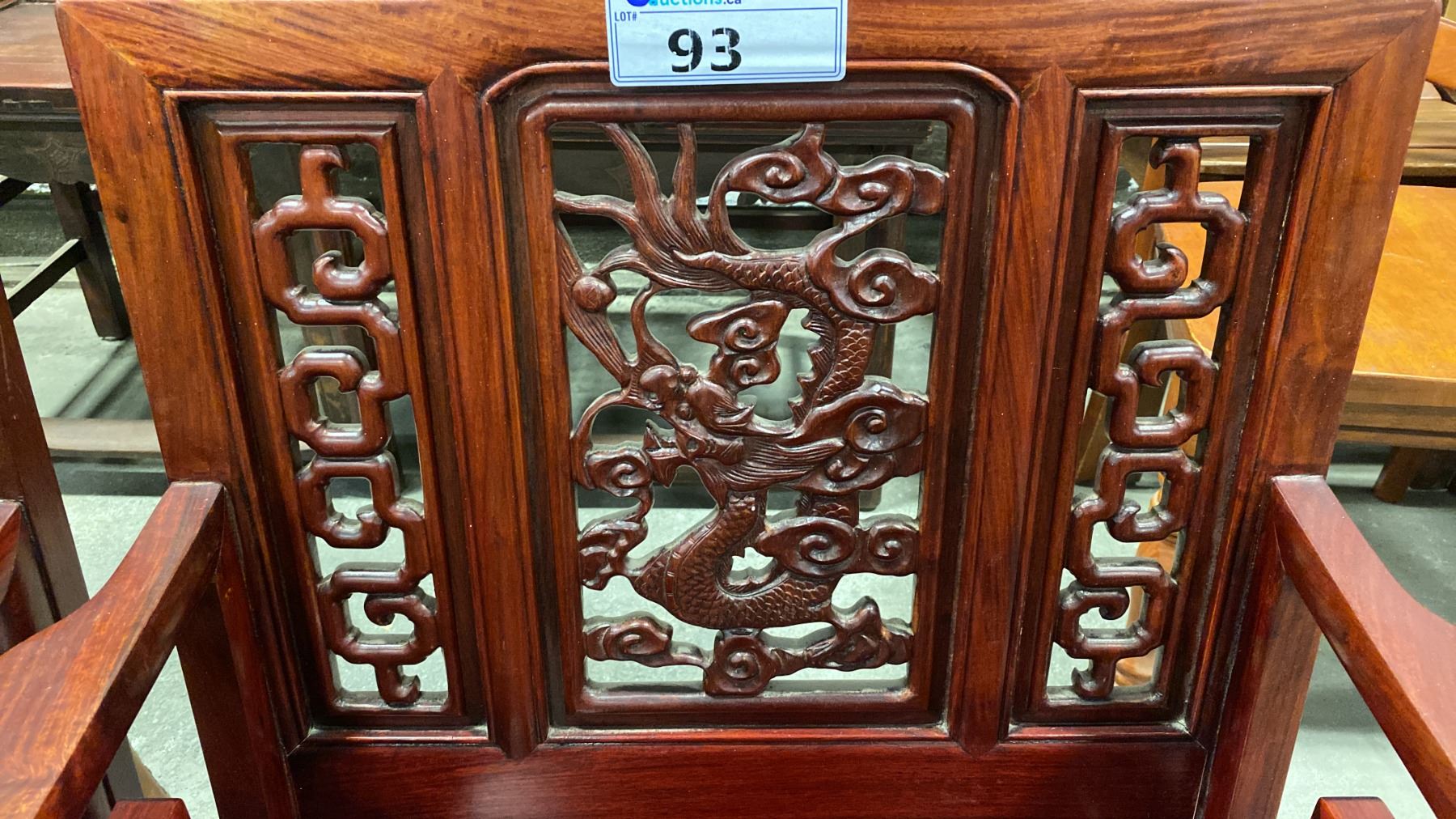 PAIR OF HEAVILY CARVED HARDWOOD ASIAN ARMCHAIRS