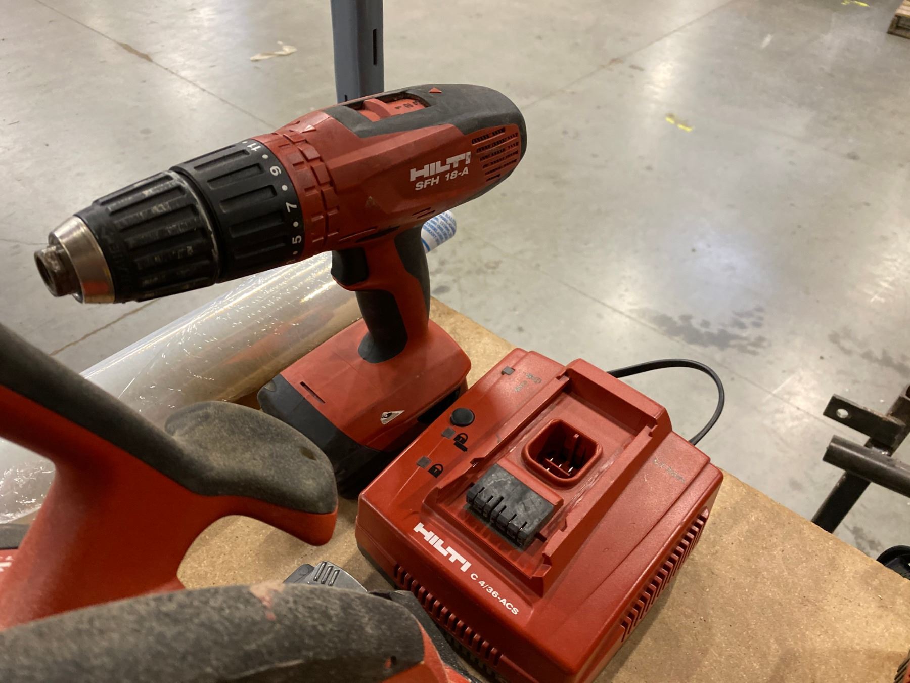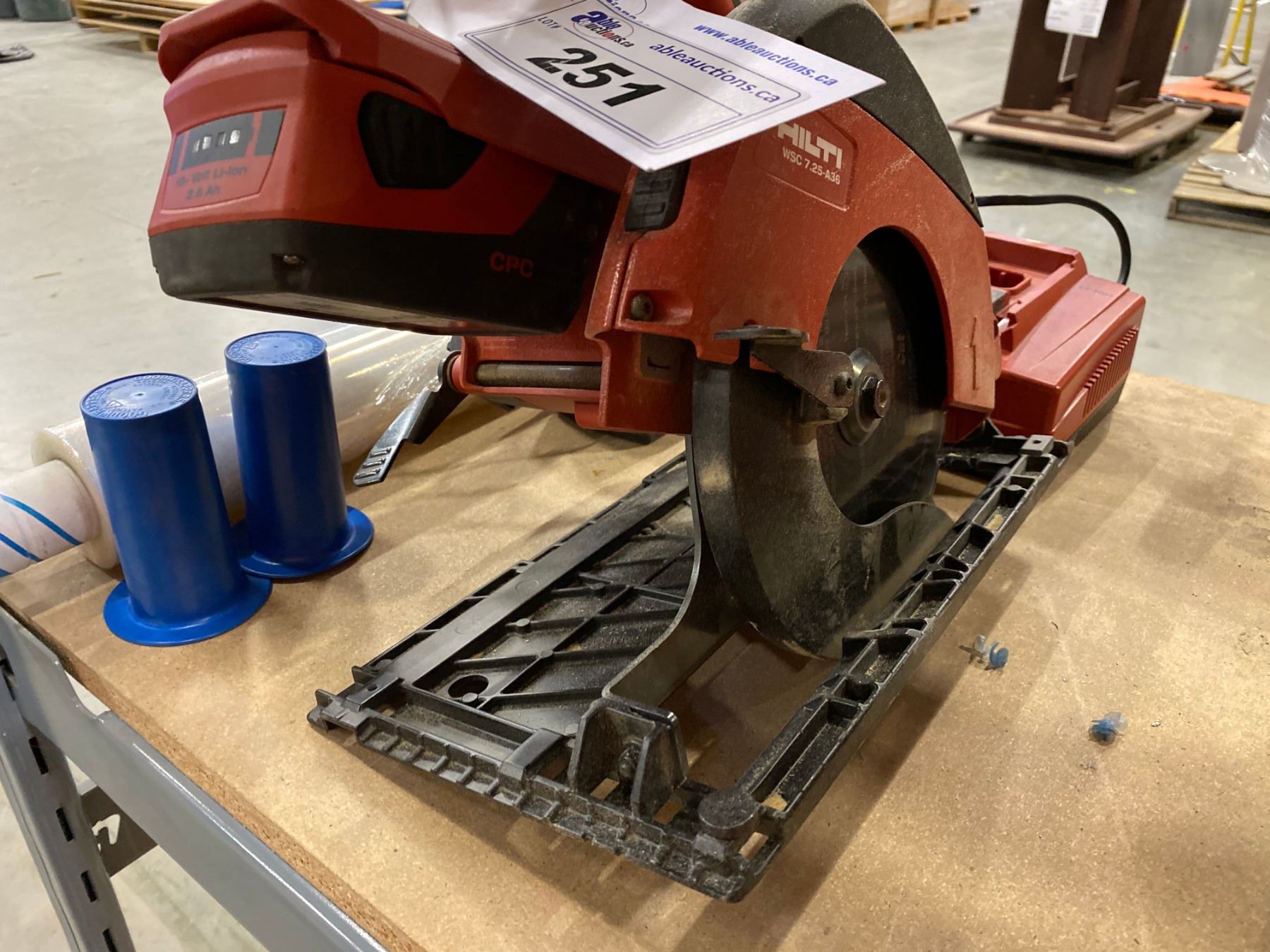 PAIR OF HILTI CORDLESS TOOLS INC. HILTI SKILL SAW AND DRILL LOT INCLUDES TWO BATTERIES AND CHARGER