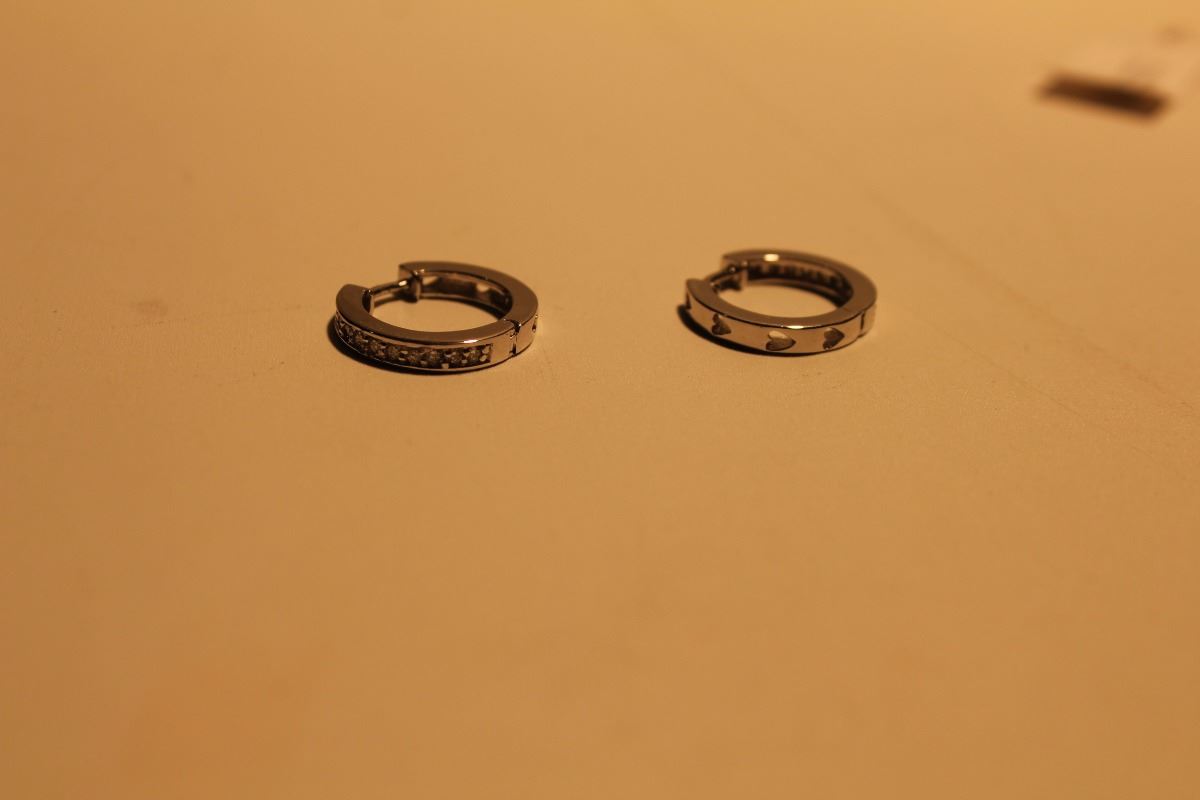 PAIR OF HUGGIE STYLE 14KT WHITE GOLD CUSTOM MADE HEART DESIGNED DIAMOND HOOP STYLE EARRINGS, 20 ROUND BRILLIANT DIAMONDS, 1.1MM, 0.28CTS, SI CLARITY, I COLOUR, MEDIUM-GOOD CUT, 2.45 GRAMS