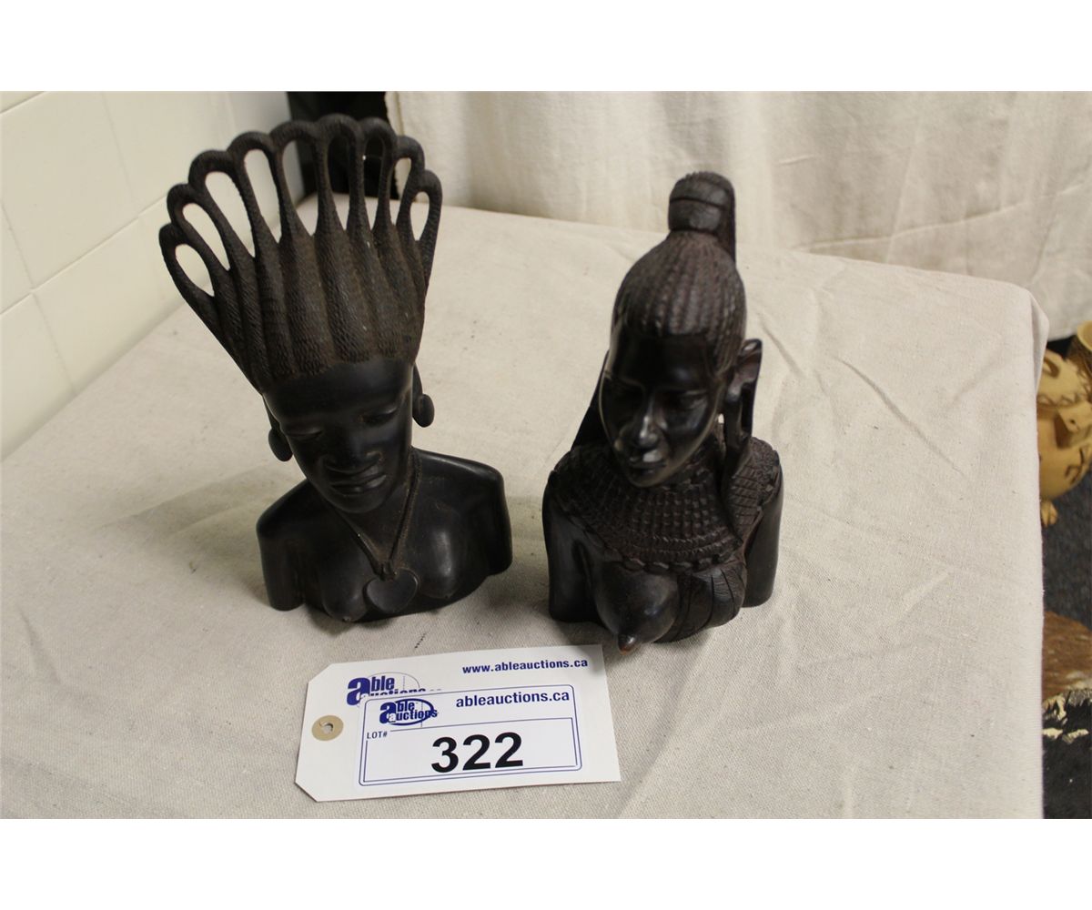 PAIR OF IRON WOOD TREE (ZIMBABWE) FEMALE BUSTS 9" HIGH