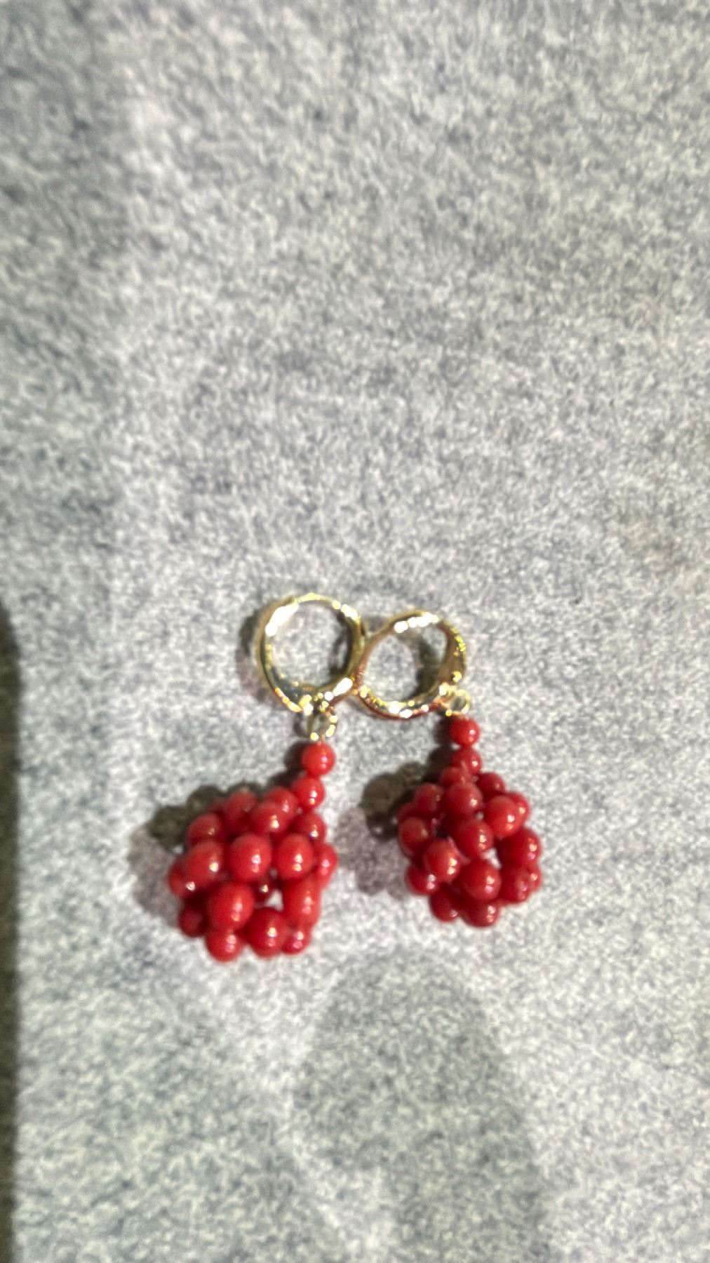 PAIR OF JAPANESE RED BEADS EARRINGS