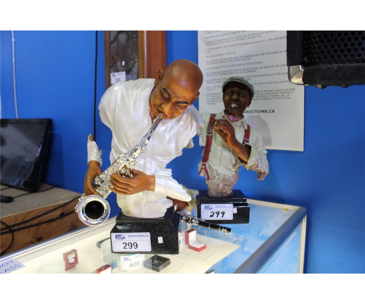 PAIR OF JAZZ MUSICIAN COMPOSITE STATUES; ONE HAS BROKEN ARM